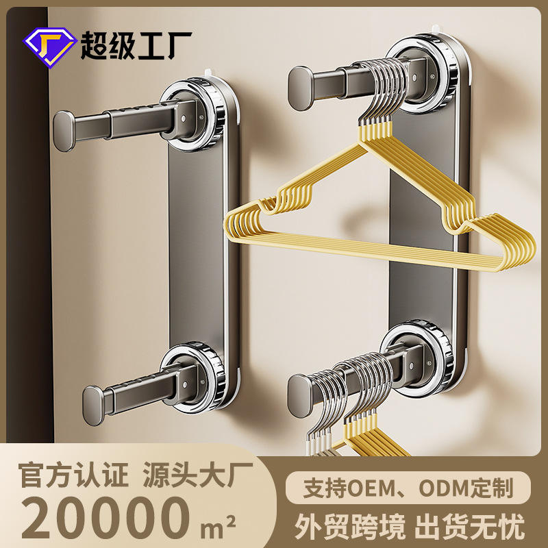 Porte-vêtements mural télescopique à double barre avec ventouse puissante pour rangement domestique et organisation des vêtements dans la chambre