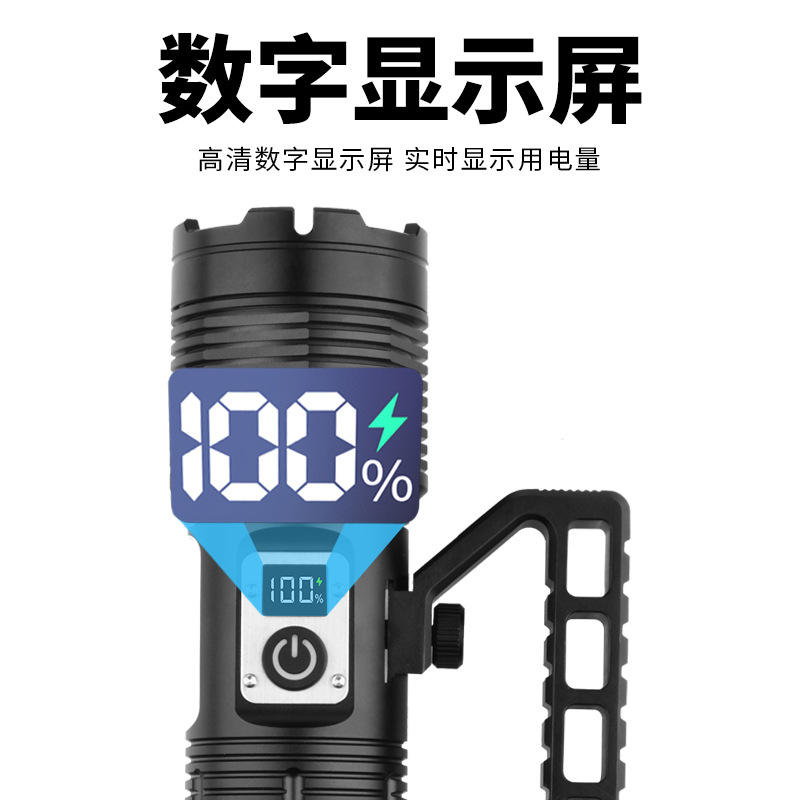 Lampe de poche rechargeable haute puissance Strong Wolf 8000mah, projecteur extérieur à LED blanche avec affichage numérique et support de montage