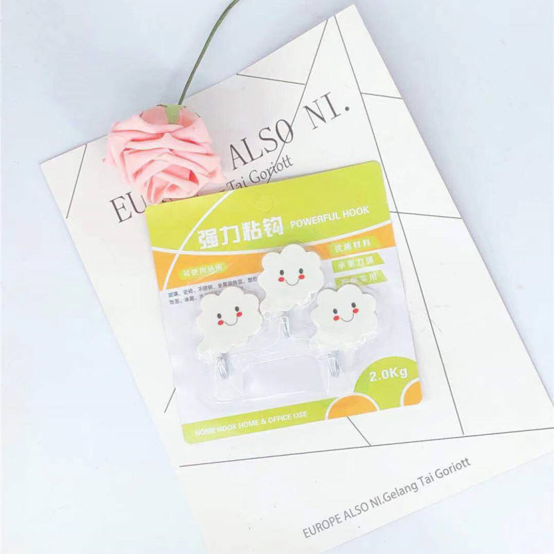 Crochets adhésifs robustes, motif nuage blanc et visage souriant, crochets sans trace, lot de trois, sans clou pour salle de bain, adhésif pour vêtements