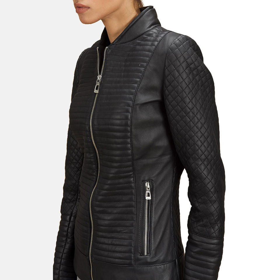 Structured Solid Black Genuine Leather Jacket Autumn Winter Waterproof Linear Quilted Panel Precision Tailoring OEM ODM