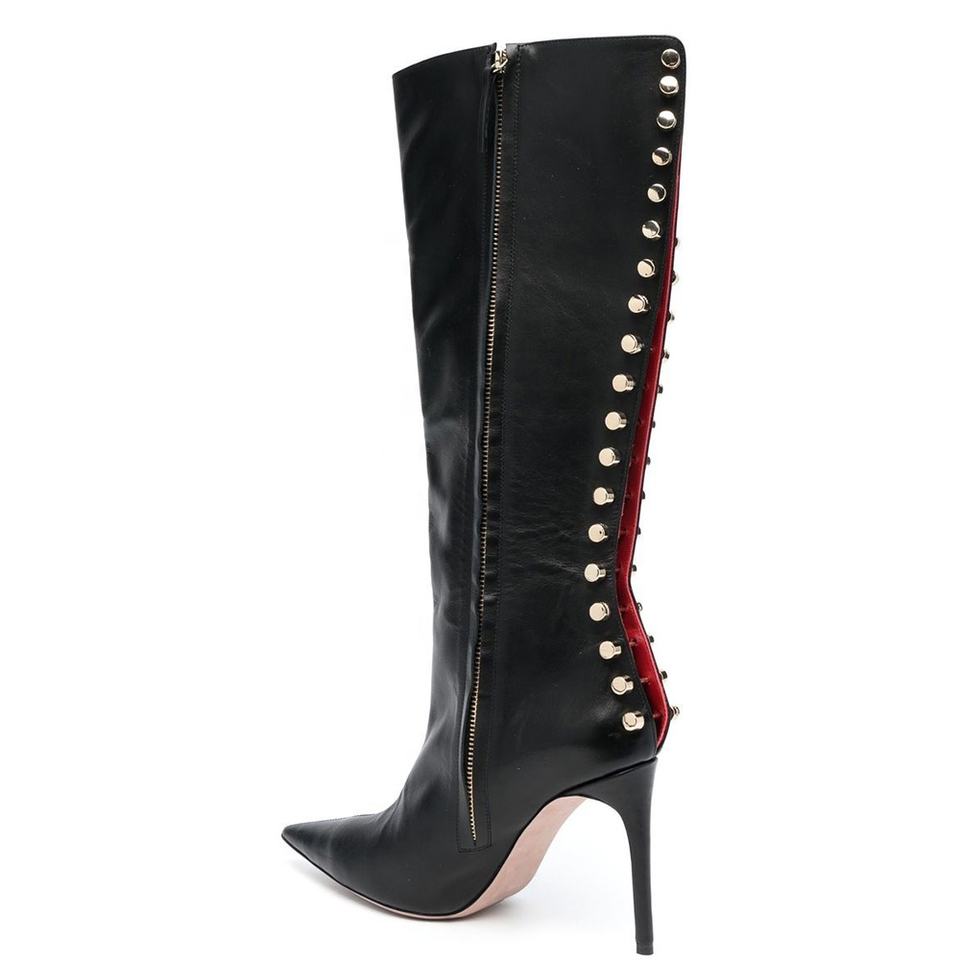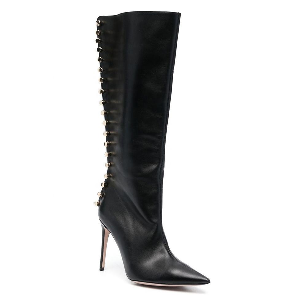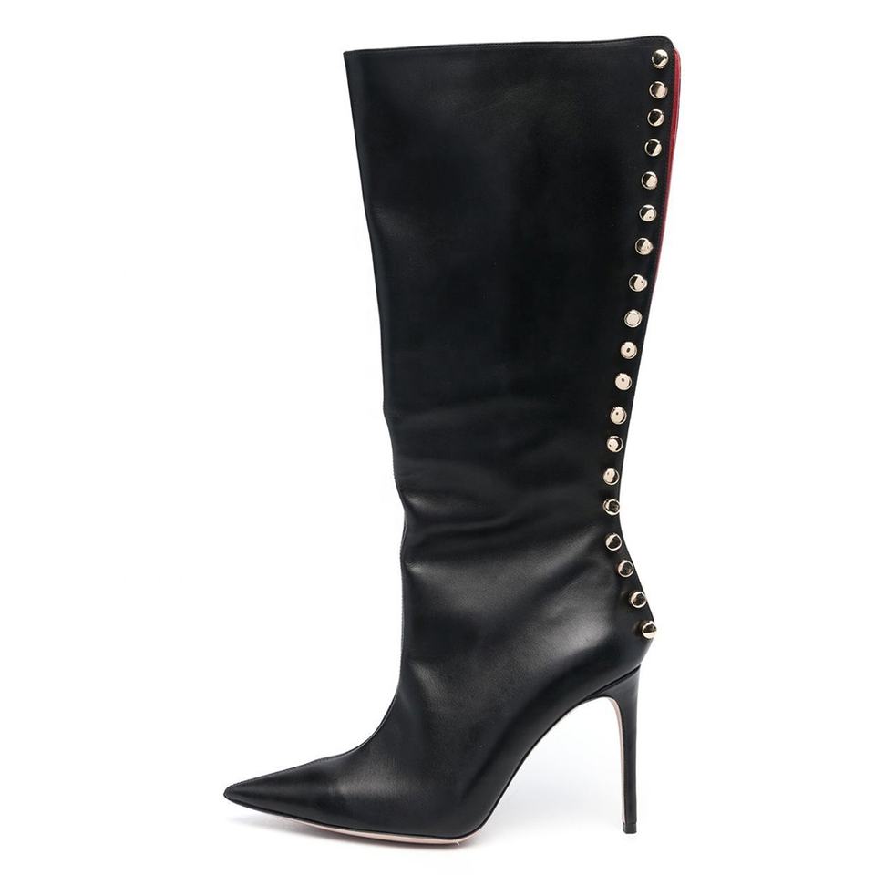 Clouté Club automne grande taille chaussures pointu mi-mollet dames femmes à la mode automne talons noir genou bottes larges mollet chaussures 2023