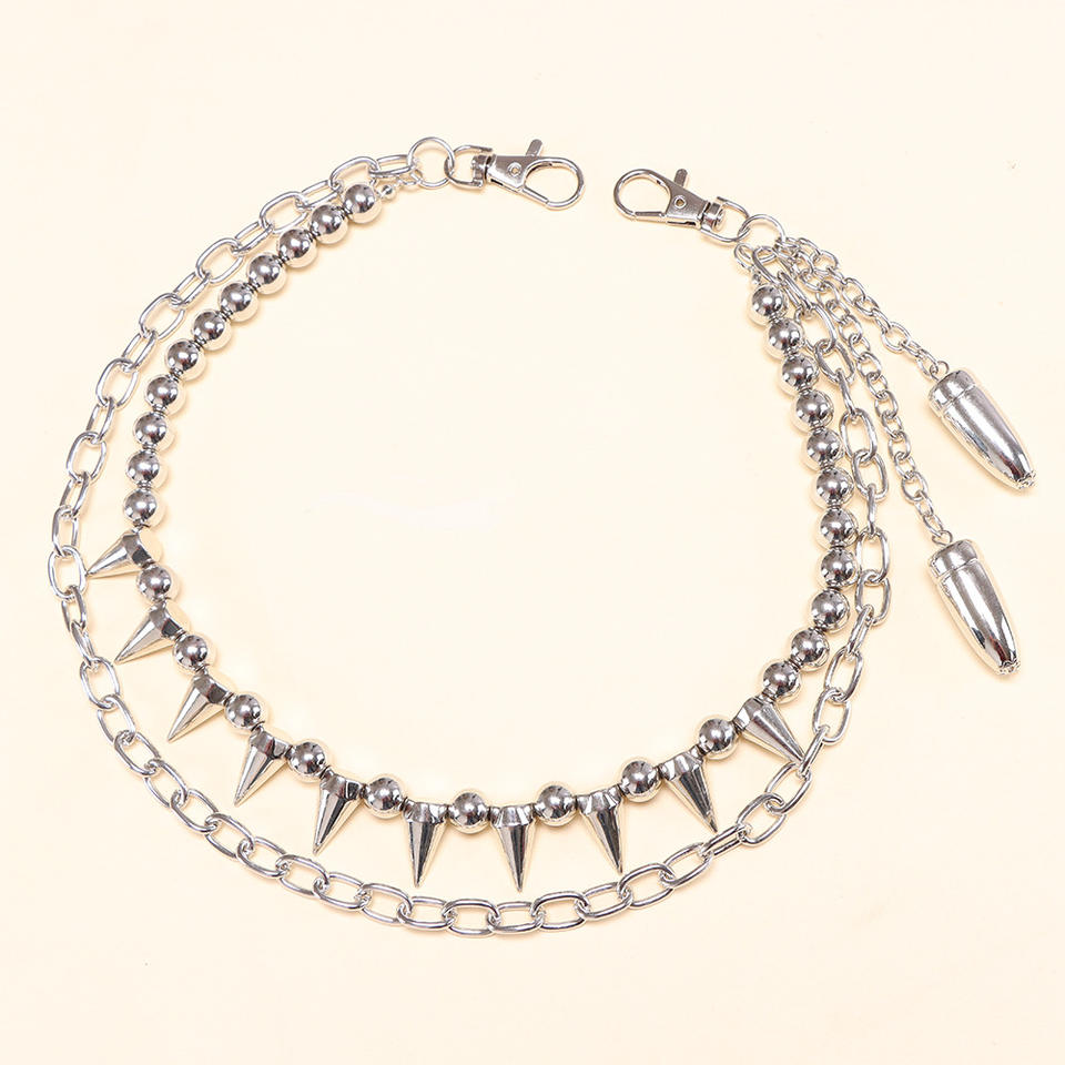 Chaîne de pantalon cloutée avec pendentif balle à pointes argentées, chaîne de taille Hip Hop, chaîne de corps décontractée et tendance en alliage de zinc à double anneau