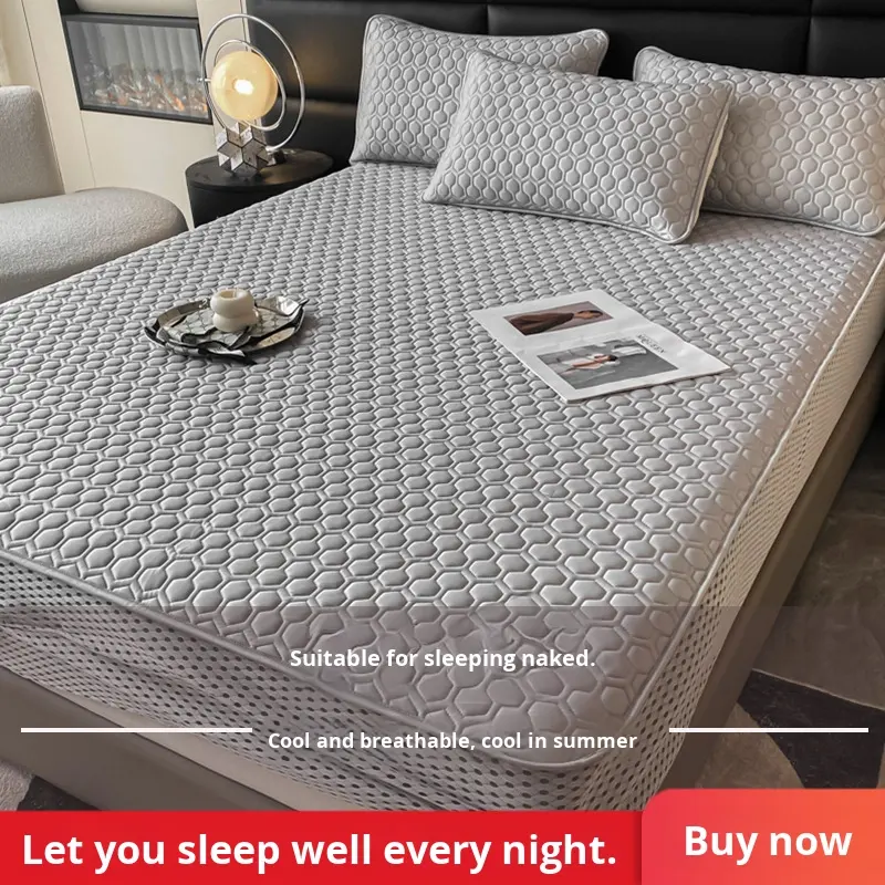 Ensemble de matelas rafraîchissant moderne en latex pour dortoir étudiant, trois pièces en soie glacée pour l'été, drap-housse imprimé lavable fabriqué à la machine