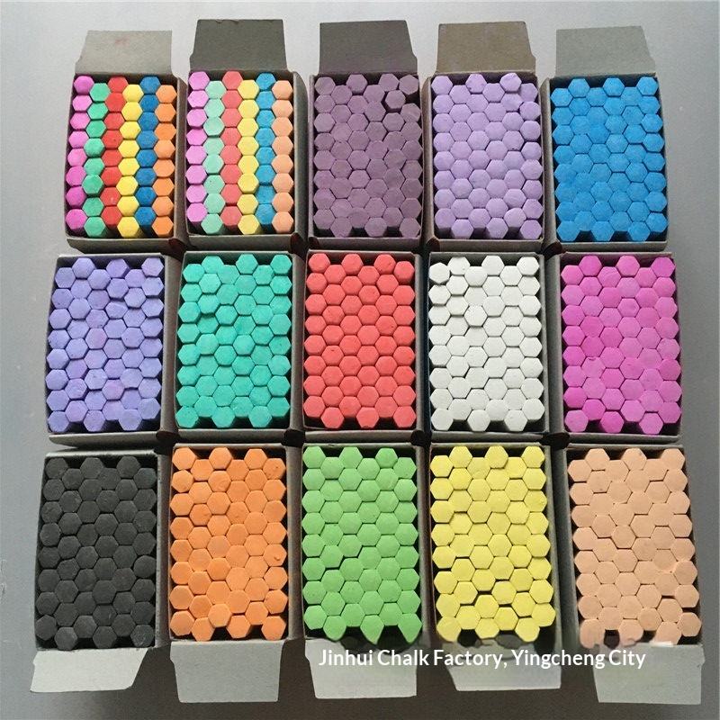 Craie hexagonale colorée sans poussière de 7,4 cm pour tableau noir, idéale pour l'enseignement et le dessin (noir, rose, blanc)