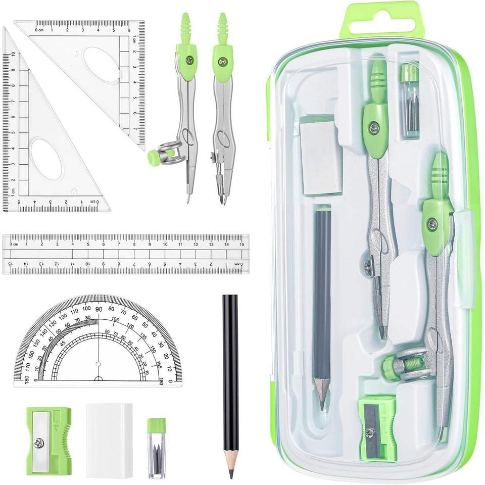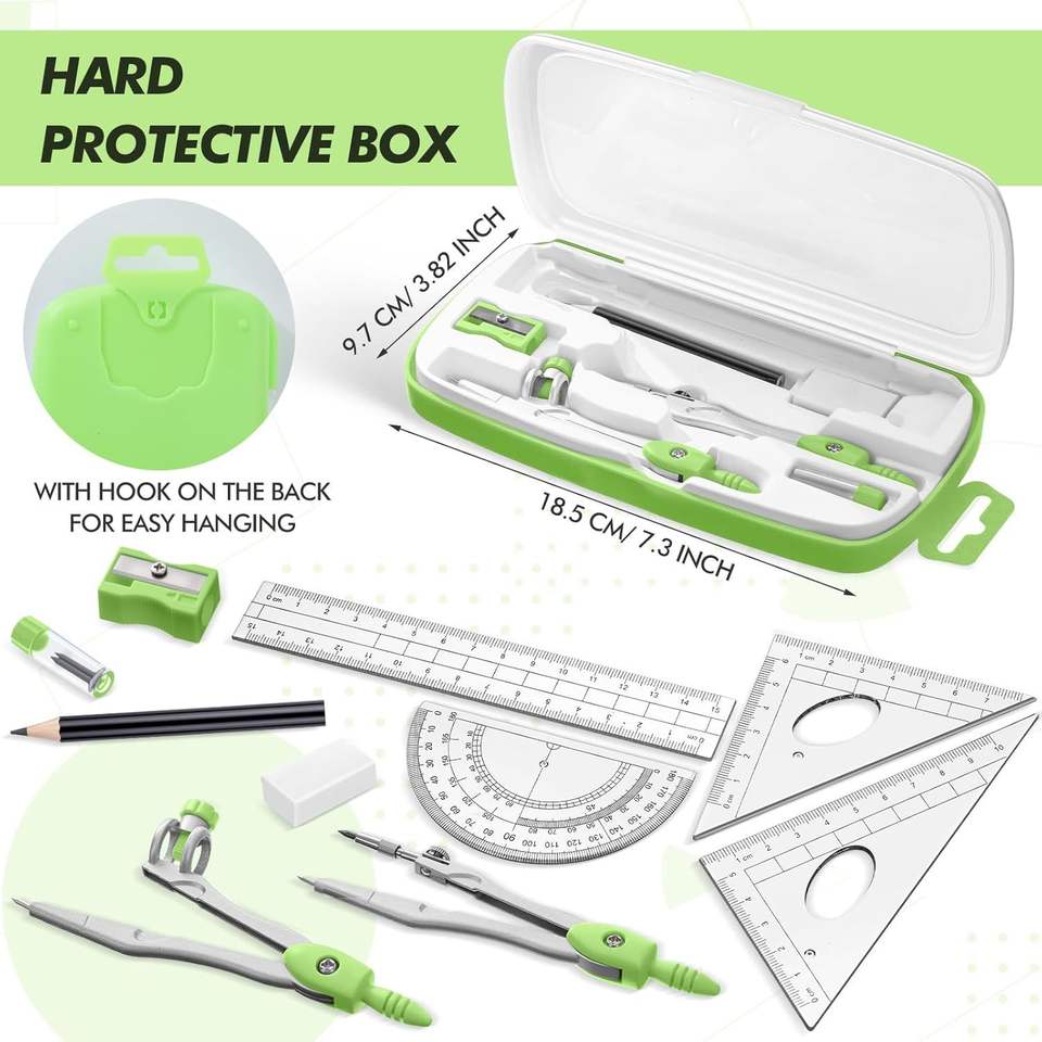 Fournitures scolaires : Ensemble de géométrie mathématique 10 pièces avec boîte de rangement incassable, incluant règles, rapporteur, compas, taille-crayon et plus encore !