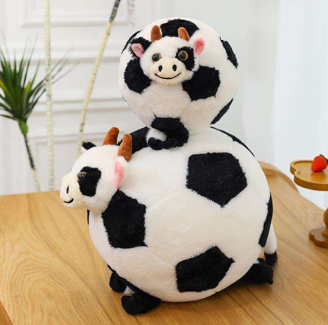 Peluche en forme de vache, jouet en peluche doux et durable, personnalisable, adorable, broderie, peluche de zoo, football de dessin animé