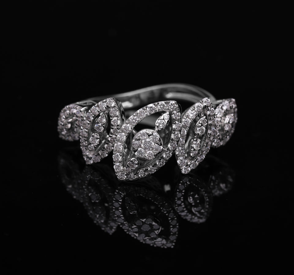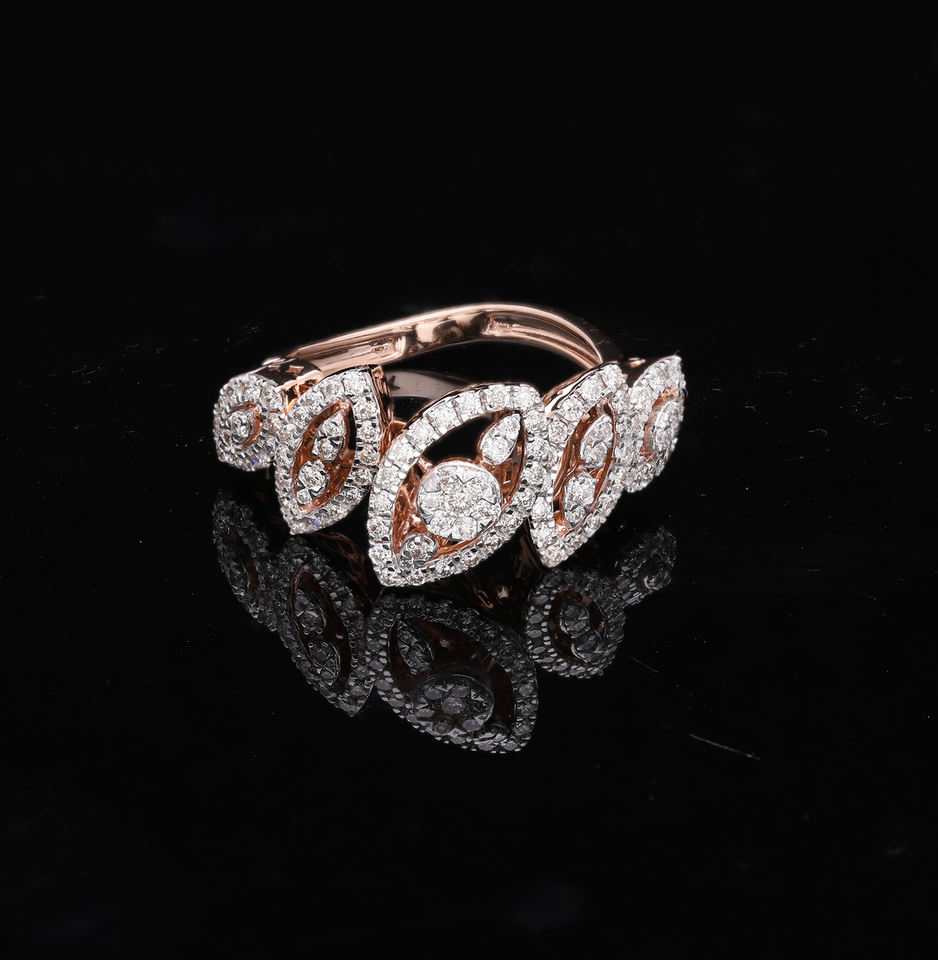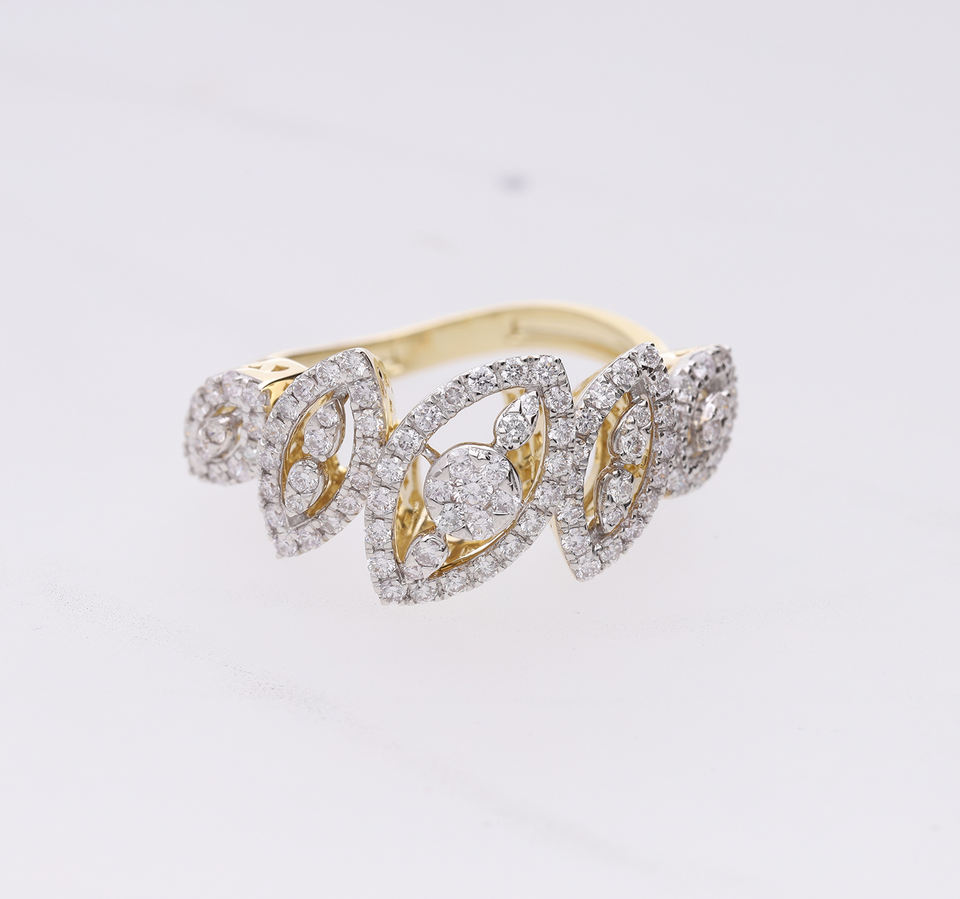 Magnifique bague classique pour femme en or jaune 14 carats plaqué rhodium, avec diamants naturels en grappe et halo de motifs ouverts inspirés de la marquise