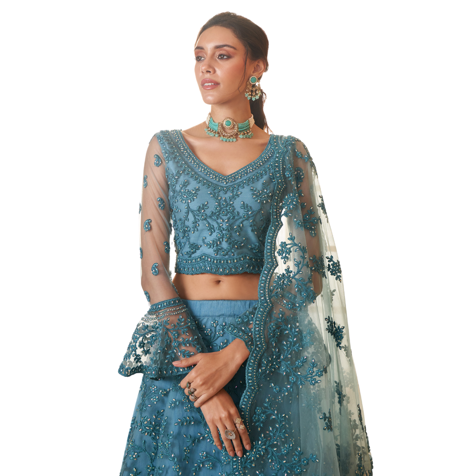 Magnifique Blouse Traditionnelle Indienne Brodée avec Cordons, Dupatta en Broderie Ajoure, Ornements de Pierres Lourdes, Multicolore, en Soie et Satin pour Femme