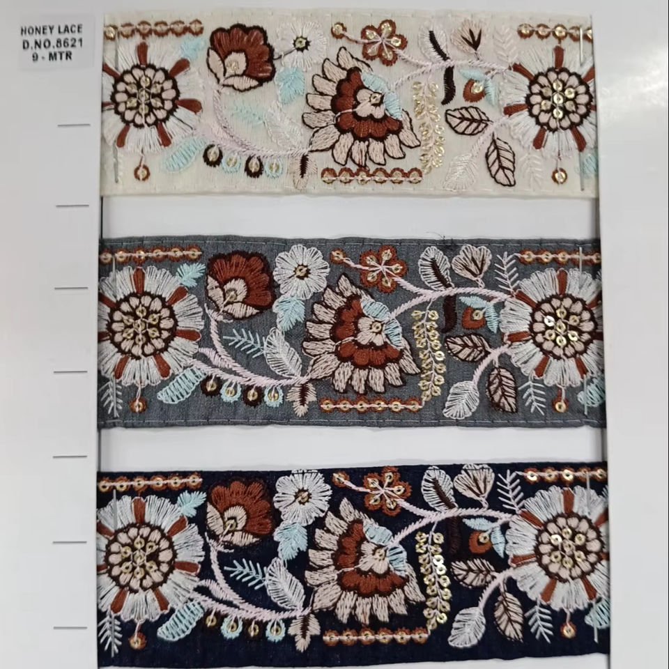 Superbe dentelle brodée florale colorée avec des détails complexes, idéale pour les vêtements de mariée, accessoires de mode