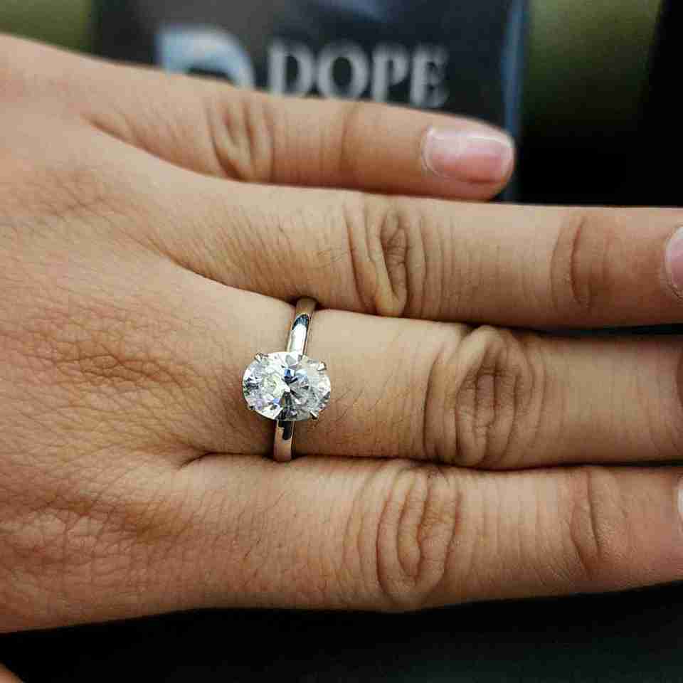 Magnifique bague solitaire ovale en moissanite tendance en acier inoxydable pour cadeau de Saint-Valentin