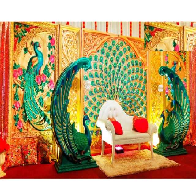 Superbe scène de réception de mariage en Inde du Sud Thème paon phénoménal Sculpture en fibre Fabricant de décoration de mariage USA Wedding UK