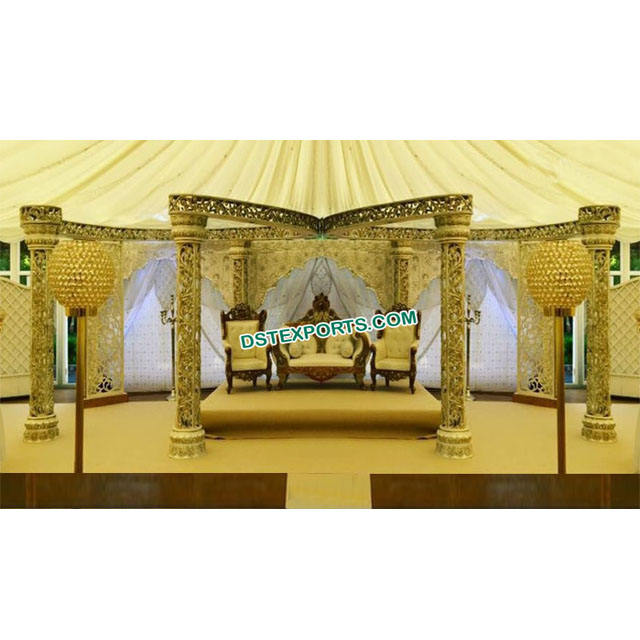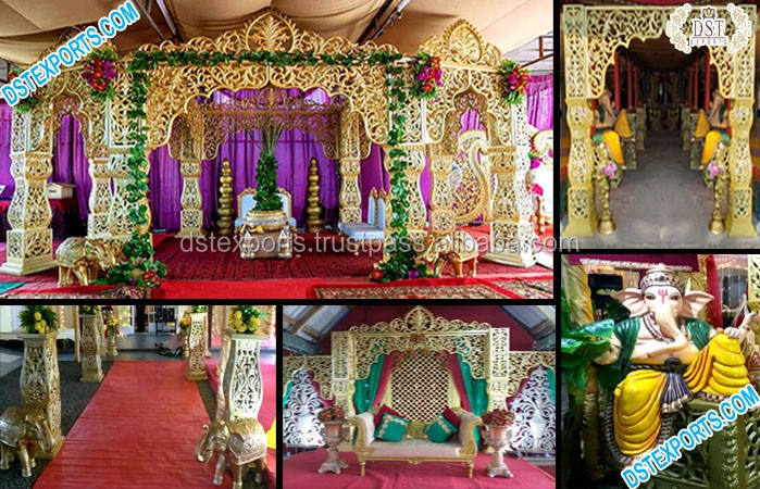 Magnifique mariage en fibre papillon Mandap Look chic mariage indien Mandap magnifique or fibre sculpté meilleur mariage Mandap vente Royaume-Uni
