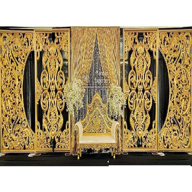 Superbes cadres de toile de fond de scène de mariage, dernier décor de scène de mariage sculpté doré, configuration de scène à thème doré