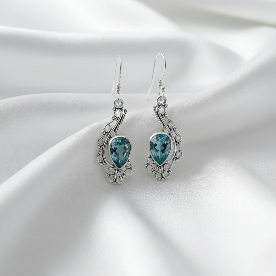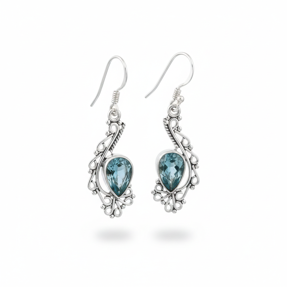 Boucles d'oreilles pendantes en argent sterling 925 de style vintage avec pierre précieuse topaze bleue, look népalais, bijoux de mode pour femmes, grossiste