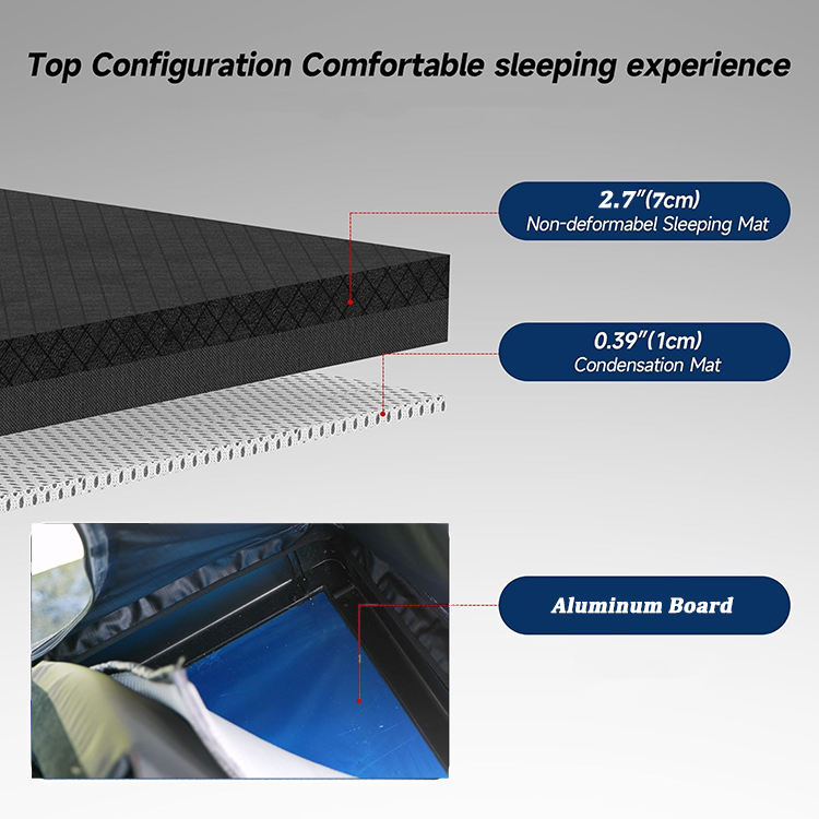 Tente de toit à cadre en aluminium robuste, conception d'ouverture arrière, support de stockage, tente de toit de voiture pour le camping de 2 à 3 personnes