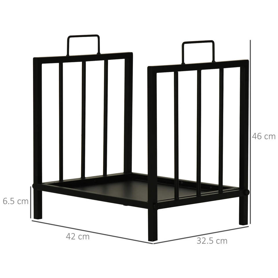 Porte-bûches en métal noir robuste avec design robuste enduit de poudre, parfait pour le stockage du bois de chauffage de la cheminée et l'utilisation du jardin