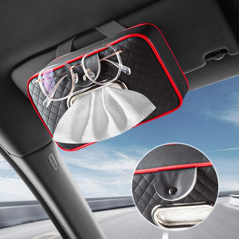 Boîte à mouchoirs noire et rouge robuste avec sangle élastique, porte-mouchoirs décoratif pour la salle de bain et la maison