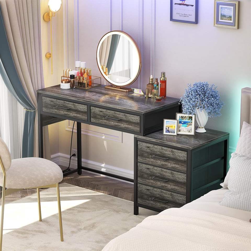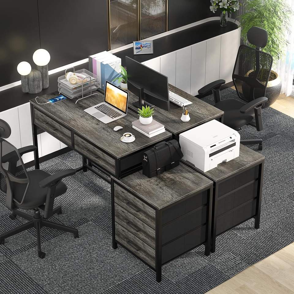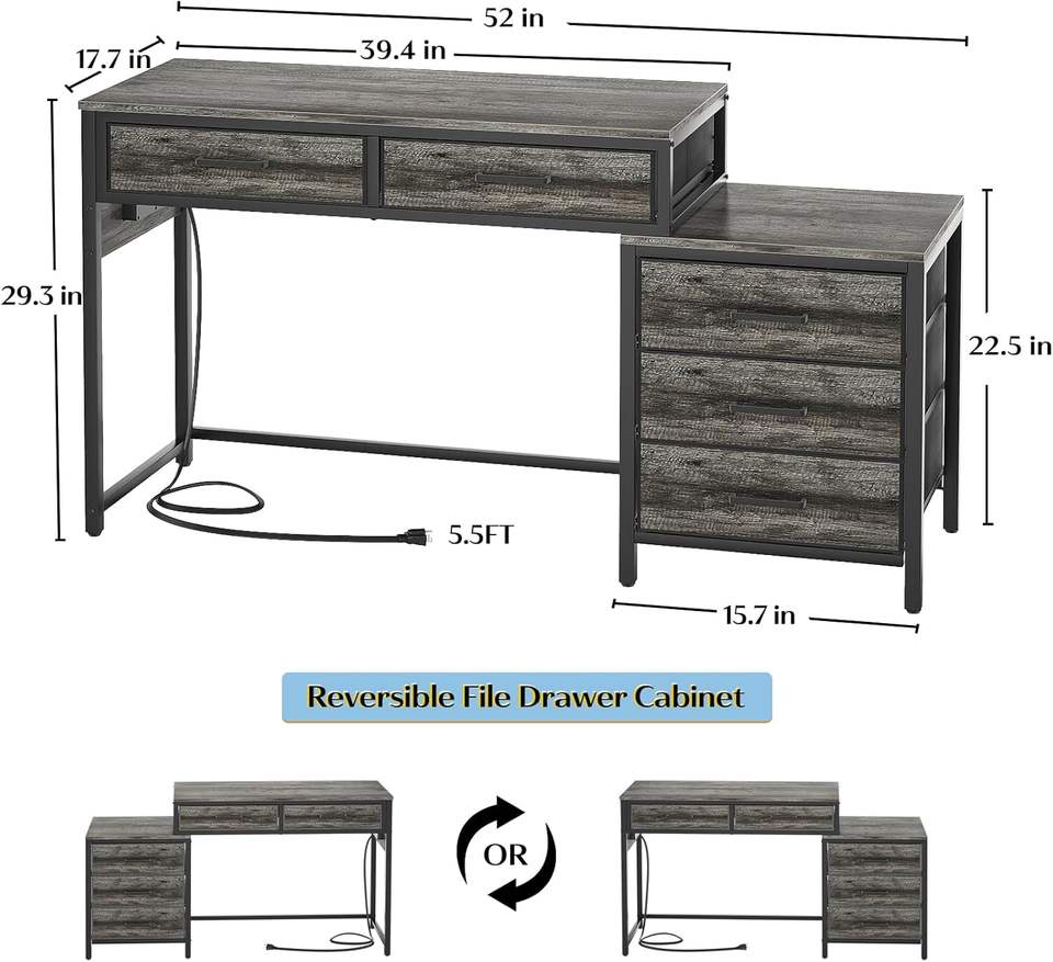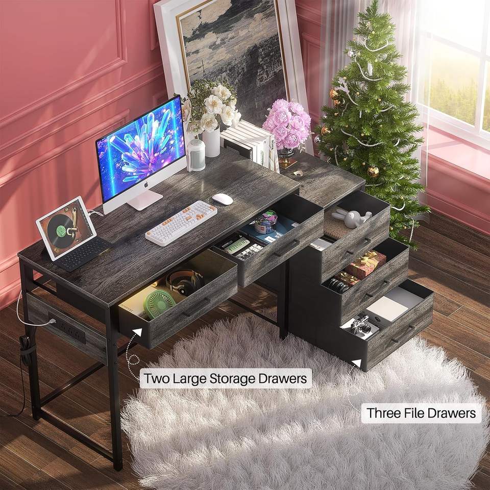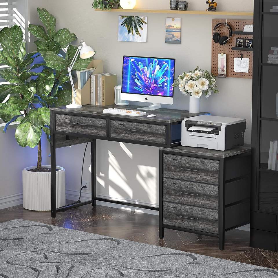 Bureau d'ordinateur robuste pour la maison avec 5 tiroirs Classeur en bois convertible Support pour imprimante Bureau PC portable pour petits espaces