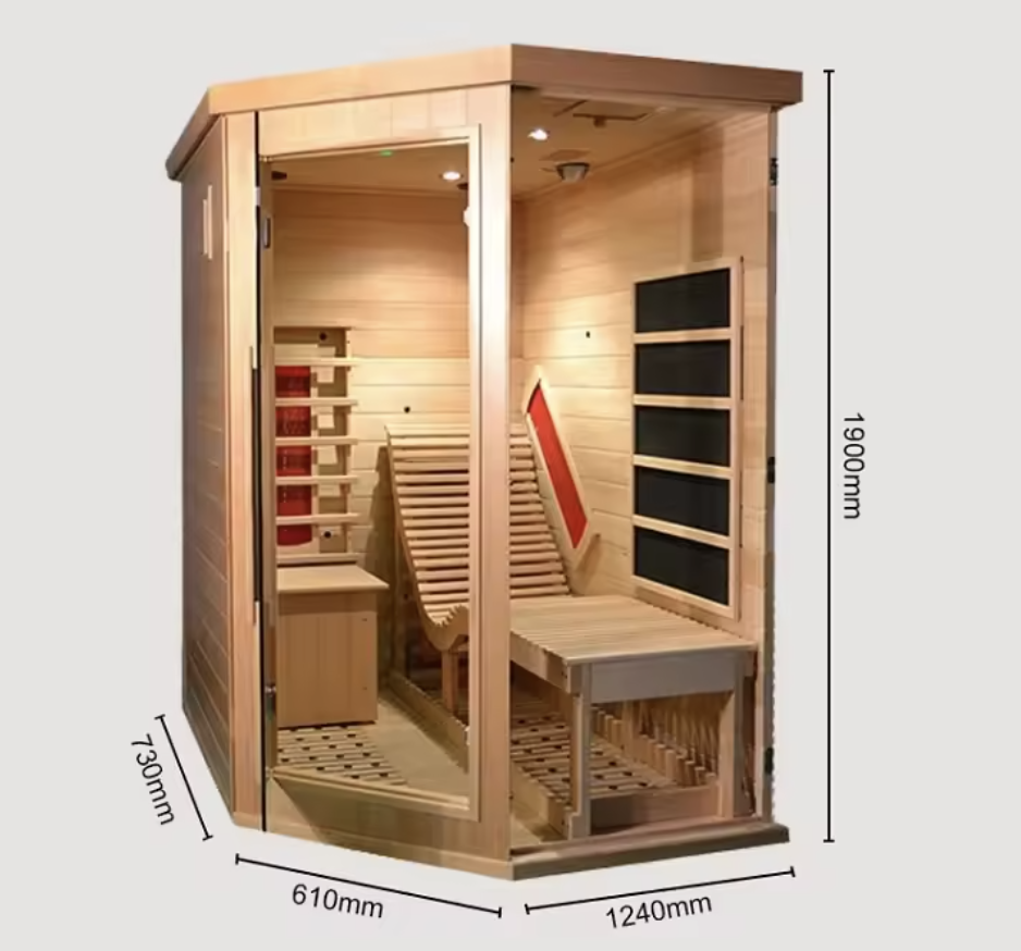 Nom du produit:Sauna carré en bois massif abordable à infrarouge lointain pour 2 personnes
