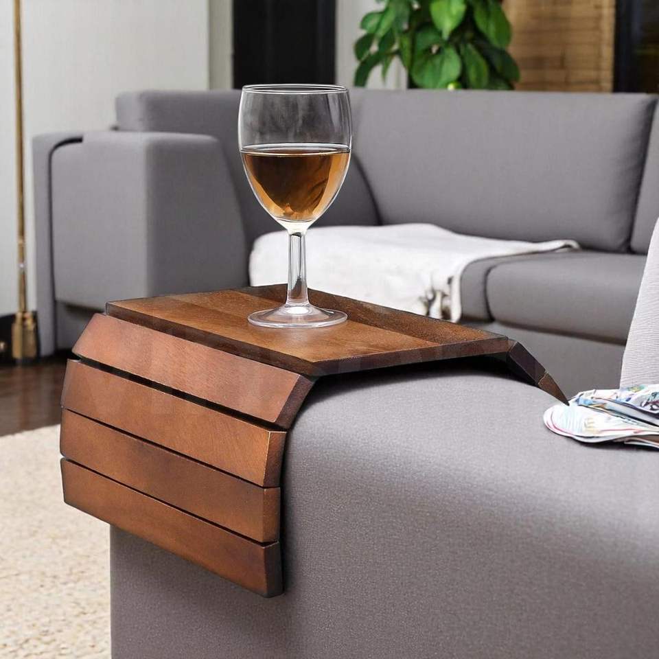 Table d'appoint robuste en bois pour canapé, organiseur de snacks, boissons et télécommandes, accessoire de mobilier robuste