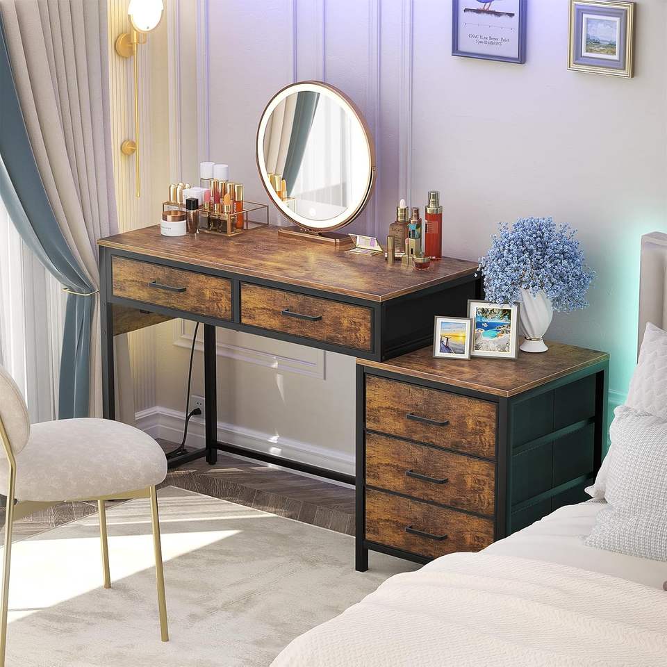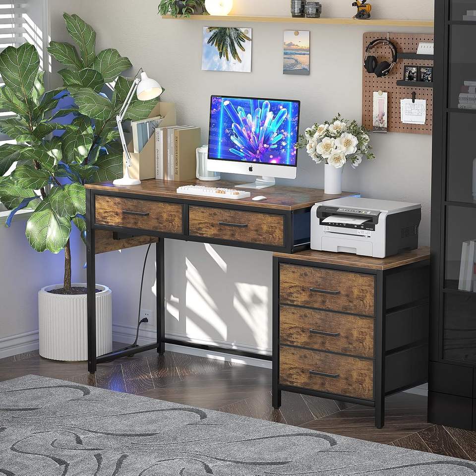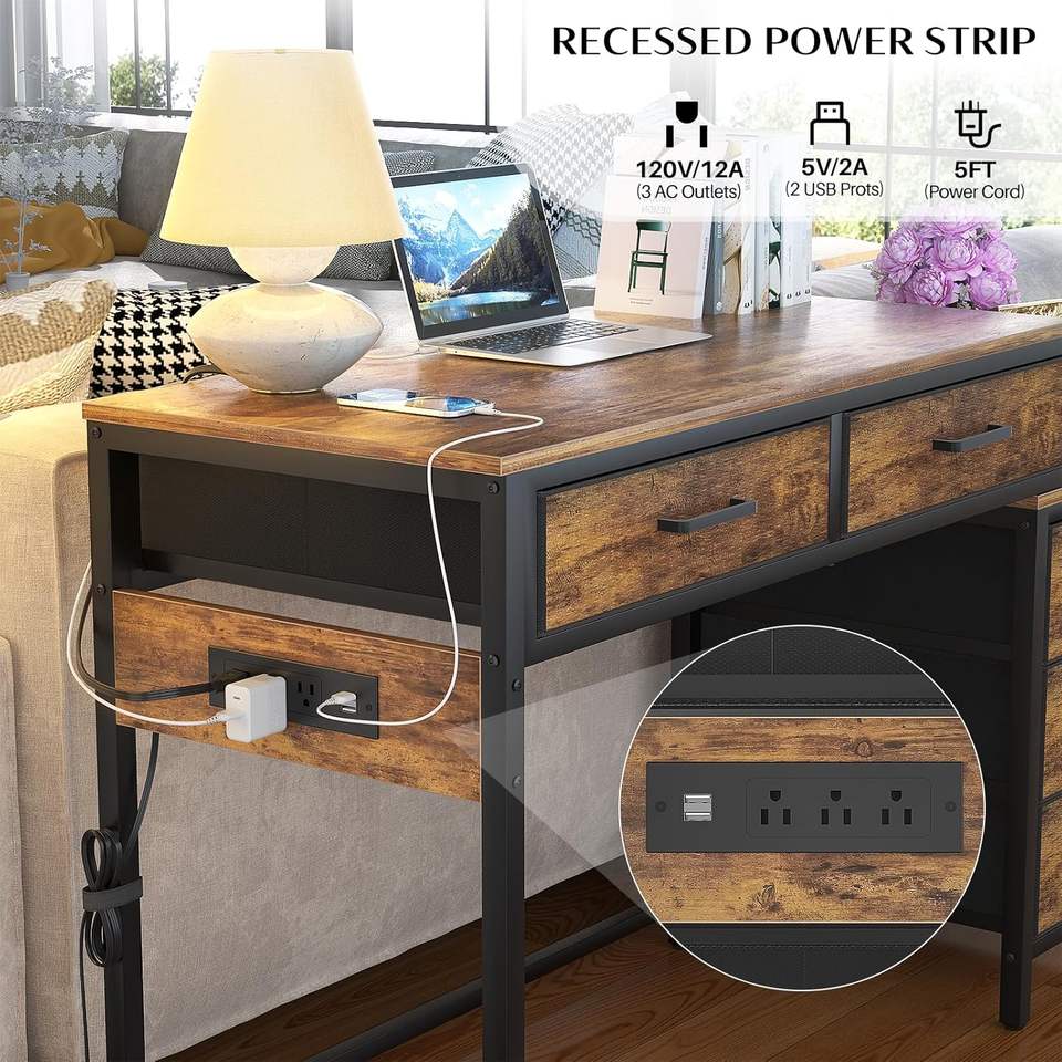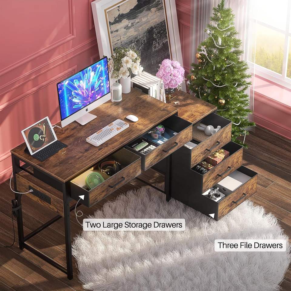 Sturdy Writing Desk 5 Drawers Power Socket USB Charging Port Double-Sided Small Space PC Computer Desk Filing Cabinet Printer