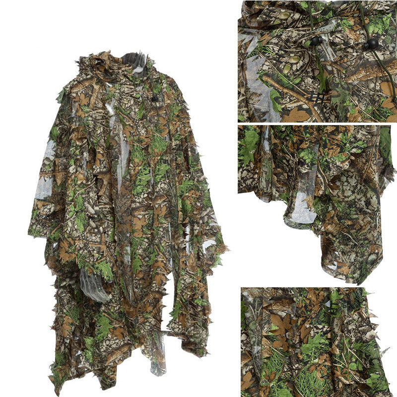 Sturdyarmor Léger Respirant Polyester Caché Poncho Multi-Terrain Camouflage 3D Feuilles Chasse Cape Furtif Ghillie