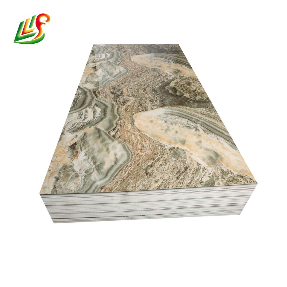 Panneau de feuille de marbre Uv de Style 3mm, haute brillance, prix raisonnable, nouveau panneau PVC Pvc + Design marbre + revêtement uv. Moulage de colle sur mur