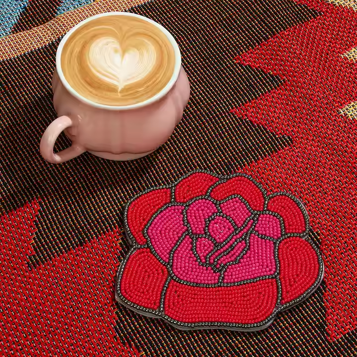 Sous-verres de style Sous-verres en perles de fleurs de roses Sous-verres en perles de riz faits à la main Décoration de bureau Cadeau de compagnon