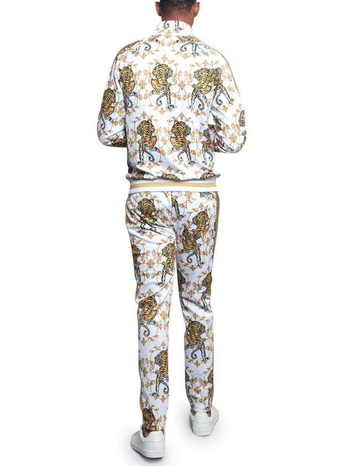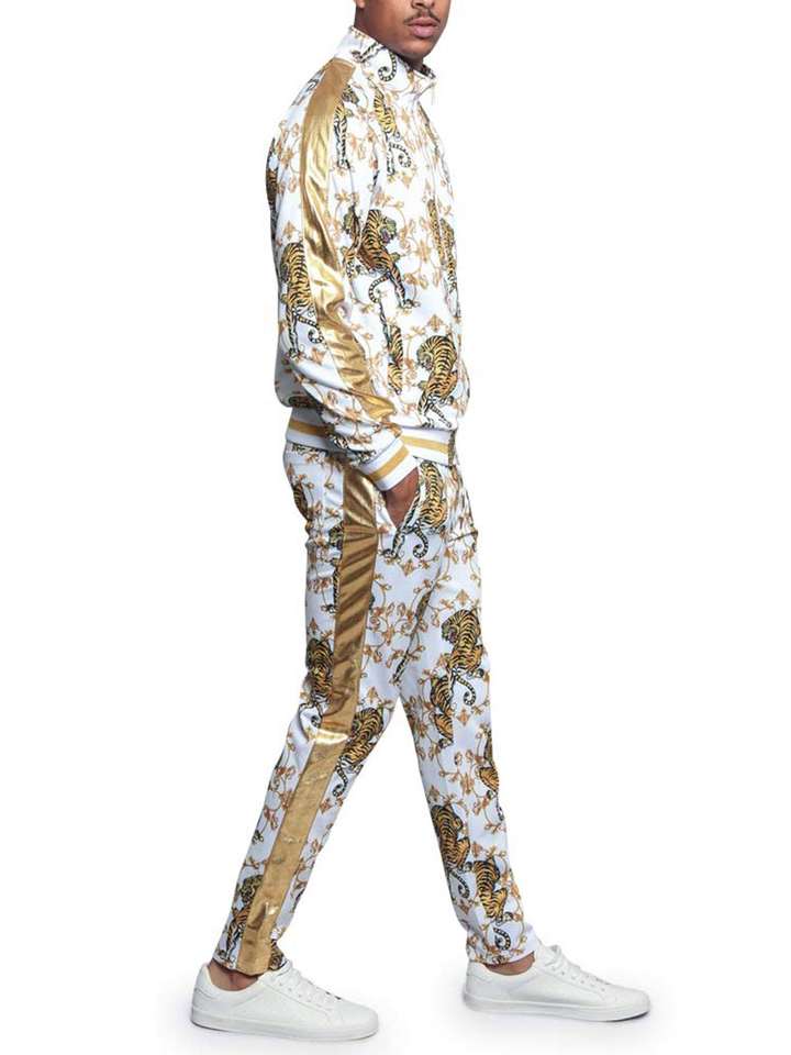 Ensemble de survêtement pour homme en mélange de polyester, design à trois bandes, style vintage, veste zippée et pantalon à bandes latérales