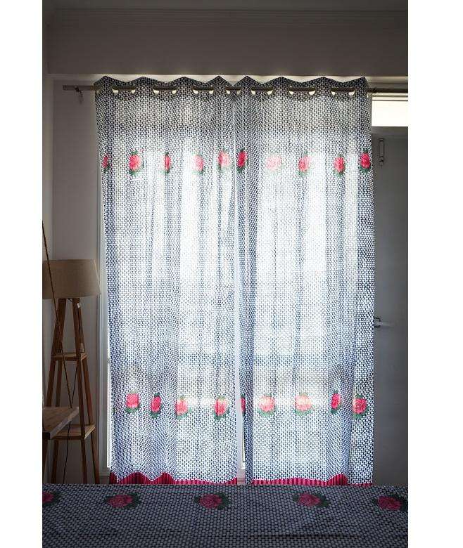 Stylish 100% Cotton Eco-Friendly Pastoral Semi Sheer Curtains for Bedroom Living Room Natural Light Filtering Fabric Valances