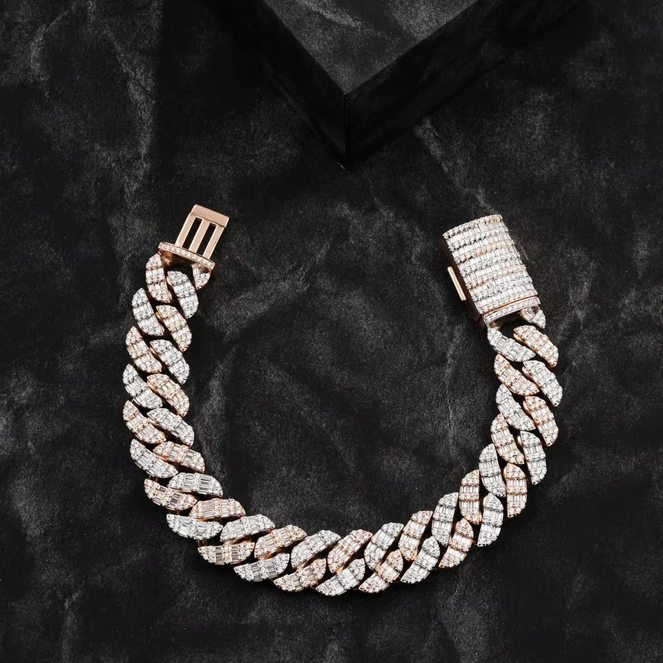 Bracelet cubain élégant en or blanc 14 carats, unisexe, avec diamants naturels, bijoux hip-hop, chaîne de 18 pouces, certifié GIA, cadeau tendance et à la mode