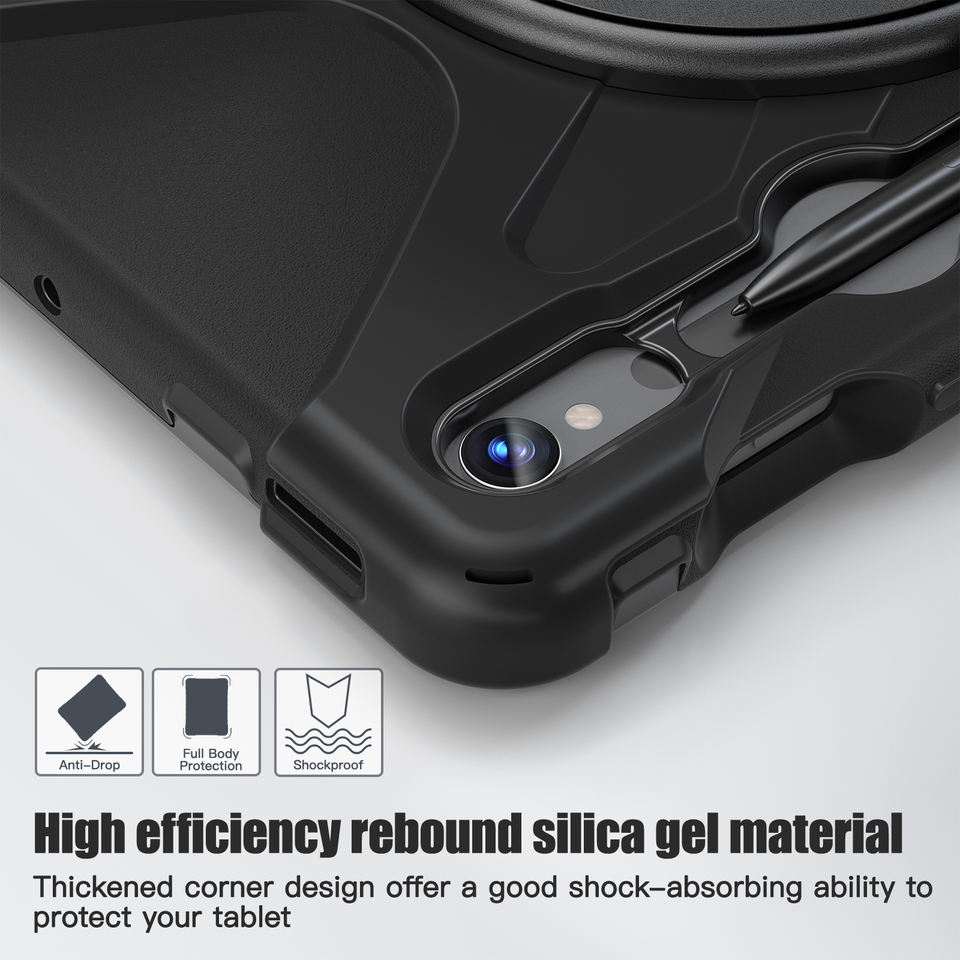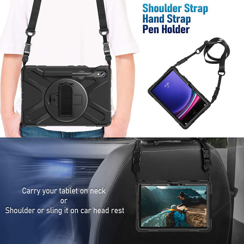 Étui de protection élégant pour tablette Samsung Tab S7 S8 S9 S9 FE S10 FE, 11 pouces, antichoc, rotatif à 360°, en plastique, avec bandoulière