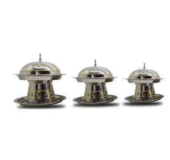 3 plats élégants en métal de haute qualité Design minimaliste argenté pour le réchauffement des aliments et le service de marmites chaudes lors d'événements spéciaux