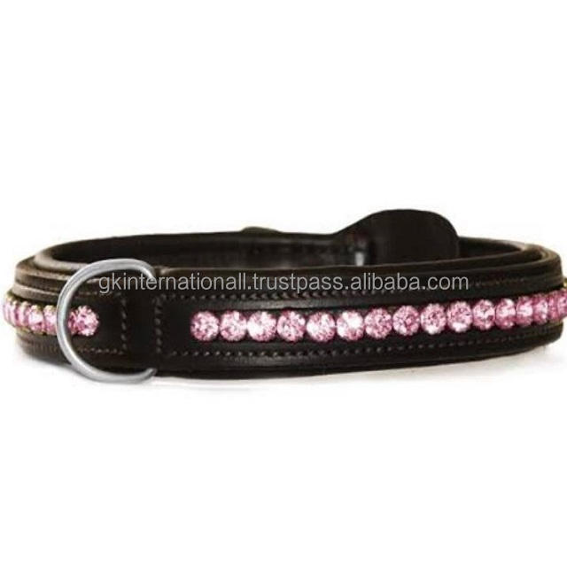 Collier de chien en cuir rembourré entièrement cousu et réglable élégant conçu avec 1 rangée de cristaux transparents chaîne en métal strass collier pour animaux de compagnie