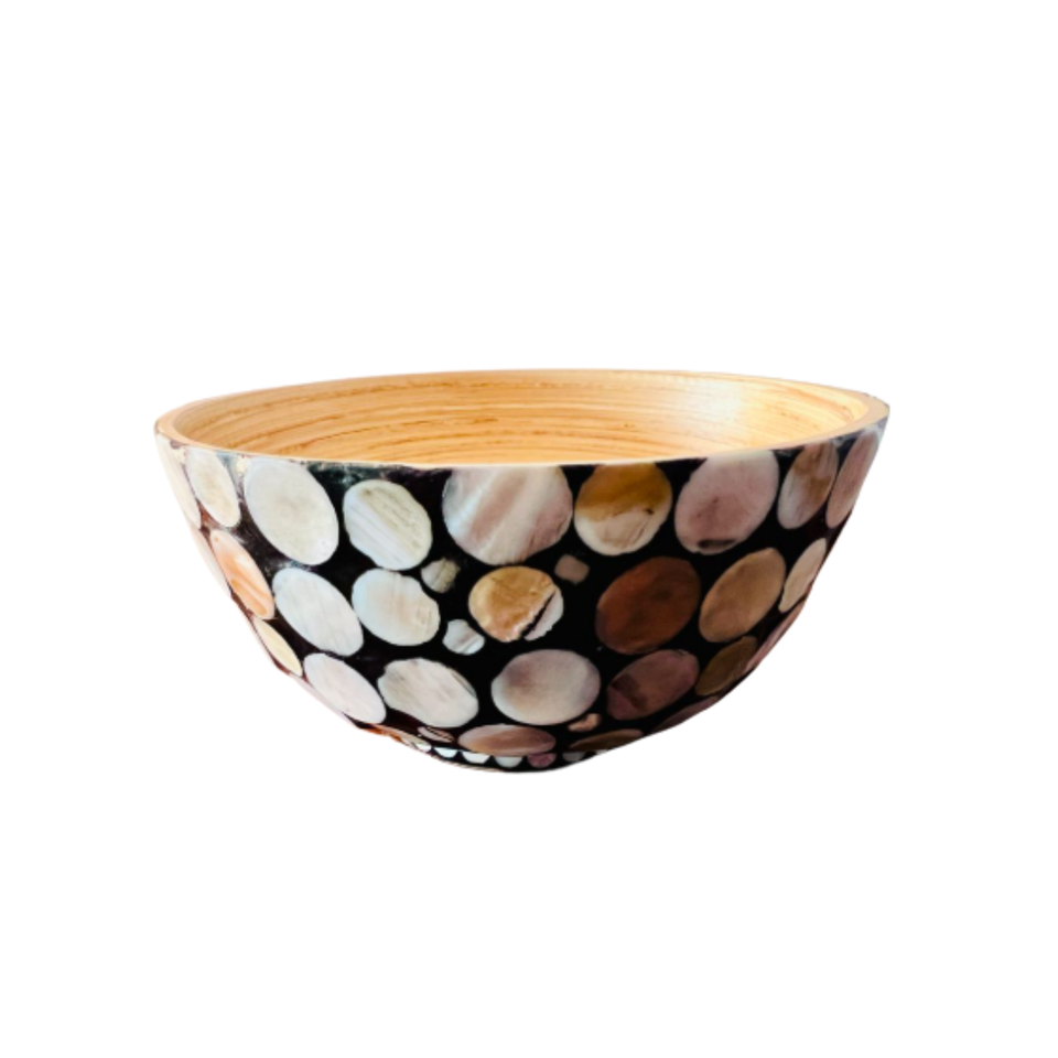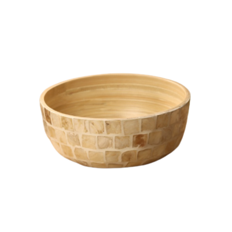 Product name:Spun Bamboo Salad Bowl Handcrafted with Mother of Pearl