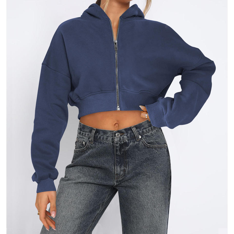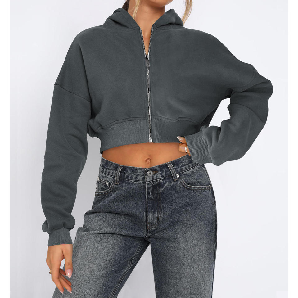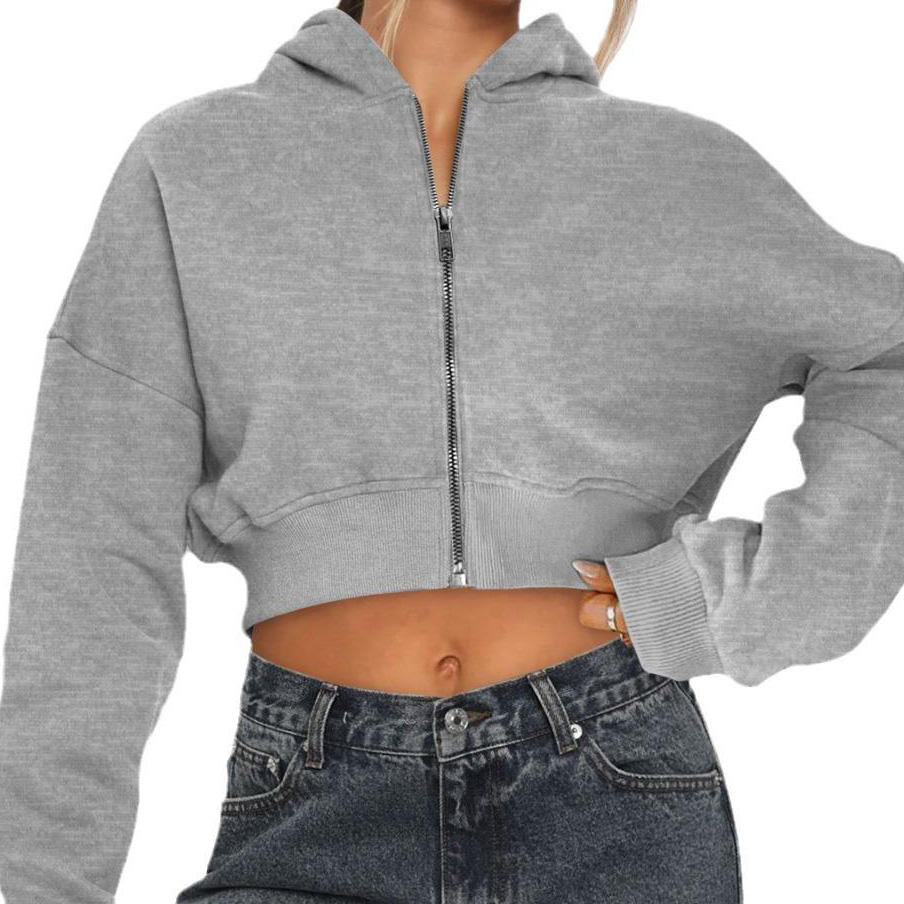 Sweat à capuche élégant anti-rides avec fermeture éclair pour femmes, vêtements de sport à motif uni, doublé sur le devant, hiver, streetwear décontracté et confortable