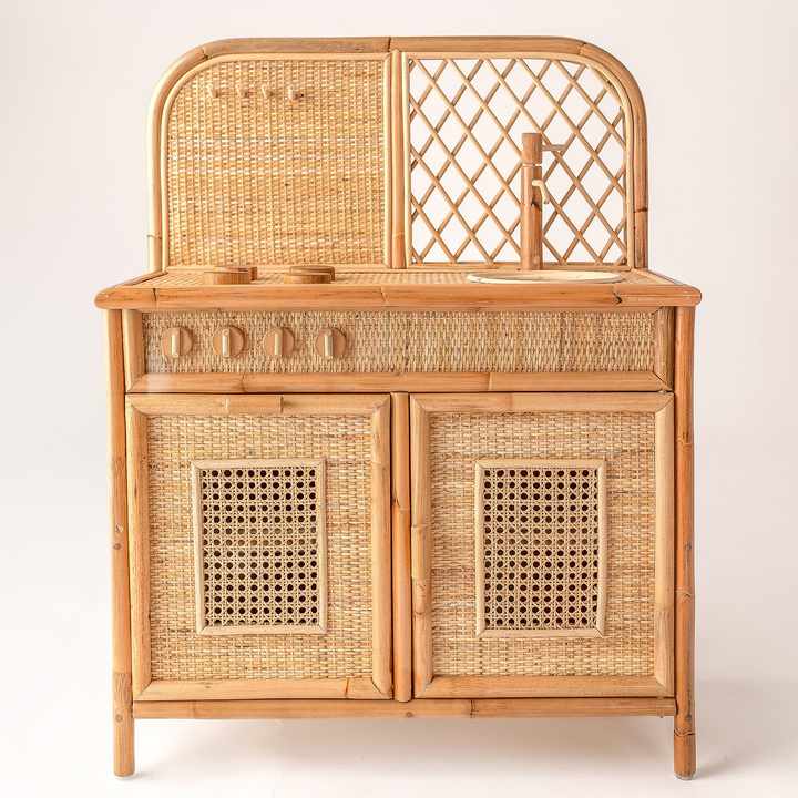Jouet élégant pour bébé boîte de cuisson gastronomique poêles poêle en bois de rotin naturel jouets meilleure vente coffret cadeau pour enfants