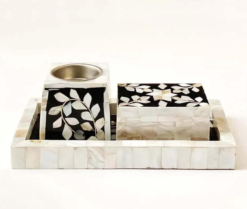 Ensemble de plateaux à bakhoor en incrustation d'os élégant, conçu pour les maisons tendance, avec des motifs d'incrustation lisses et une élégance décorative