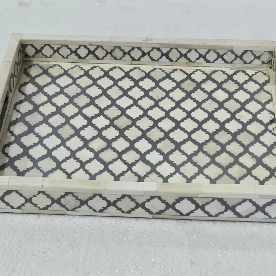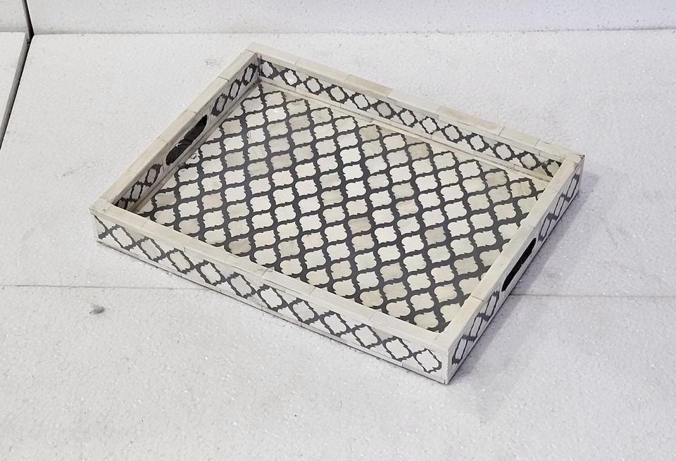 Plateau rectangulaire en incrustation d'os élégant fait à la main Table basse au design moghol moderne pour le mariage Plateau décoratif Diwali au meilleur prix