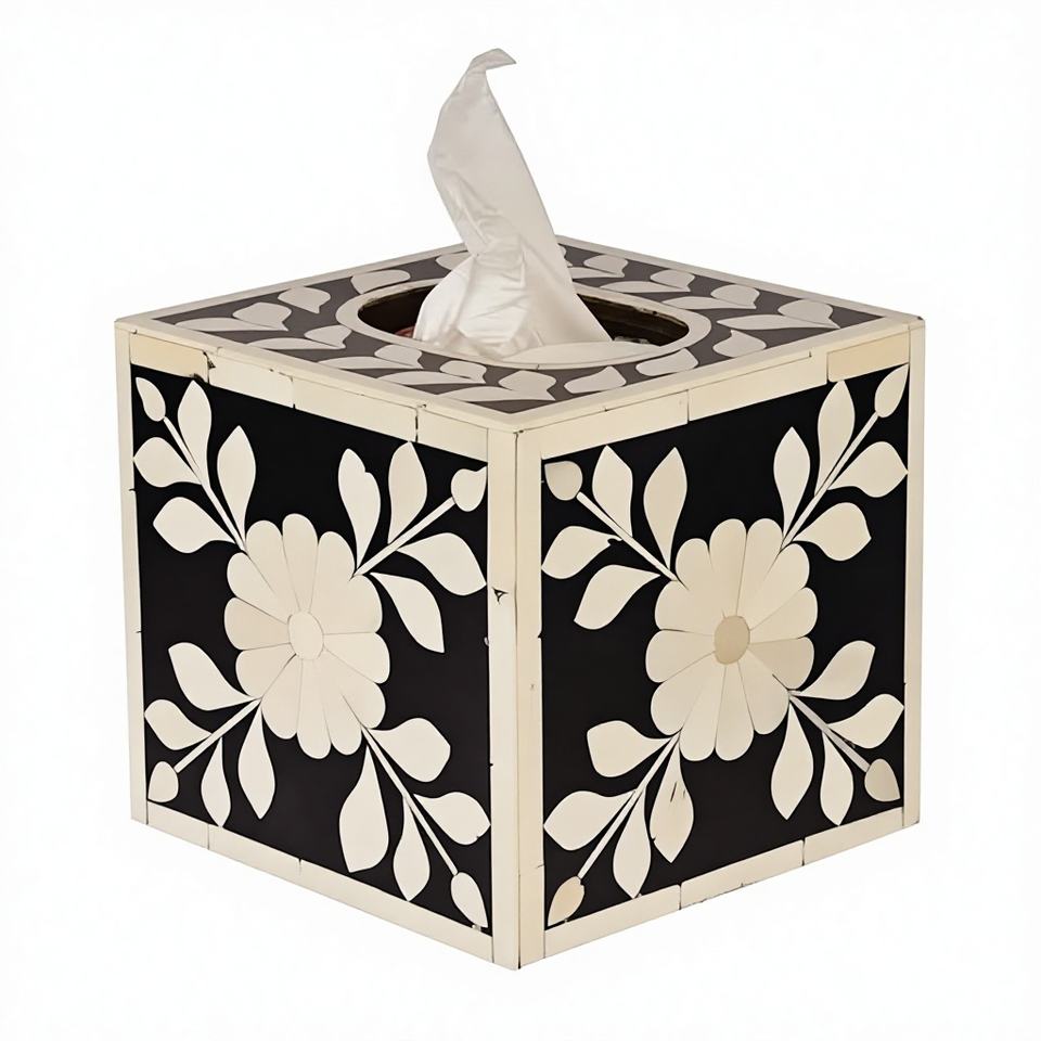 Boîte à mouchoirs élégante en os incrusté – Support design en bois fait main et écologique pour bureau et salon