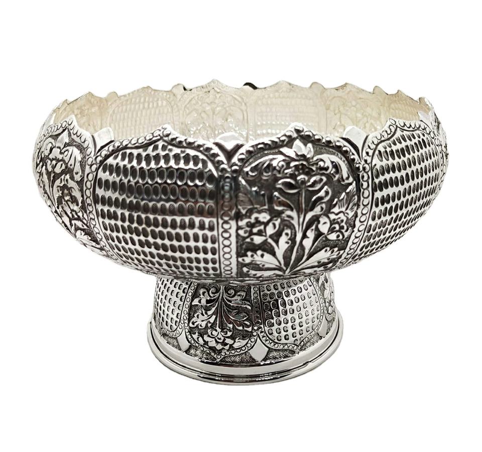 Bol élégant pour ustensiles de cuisine maison hôtel Restaurant Dates fruits secs fait à la main couleur argent forme ronde bol de service fournitures d'hôtel