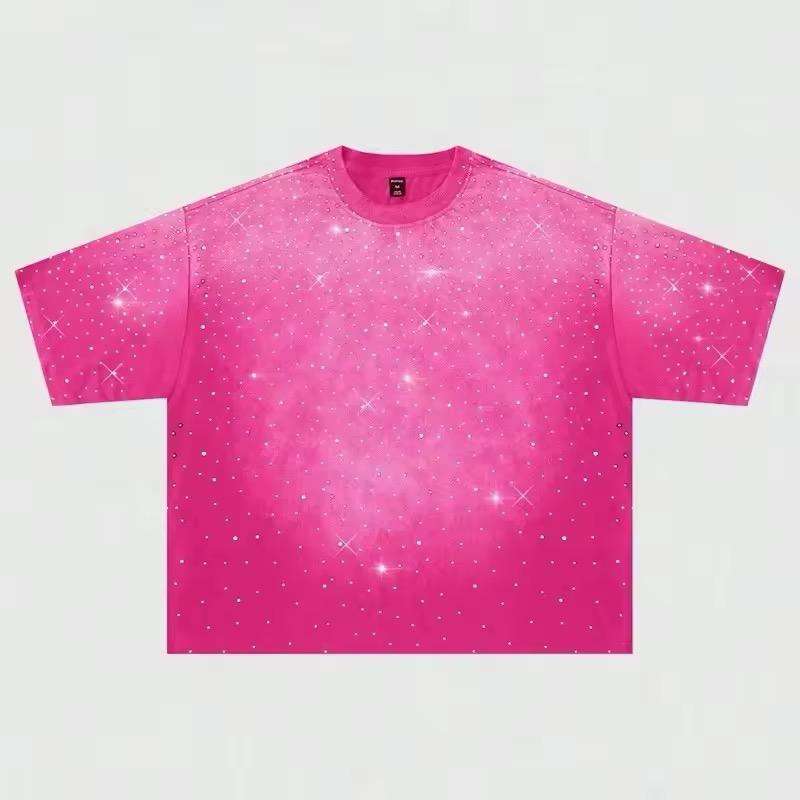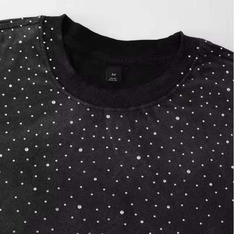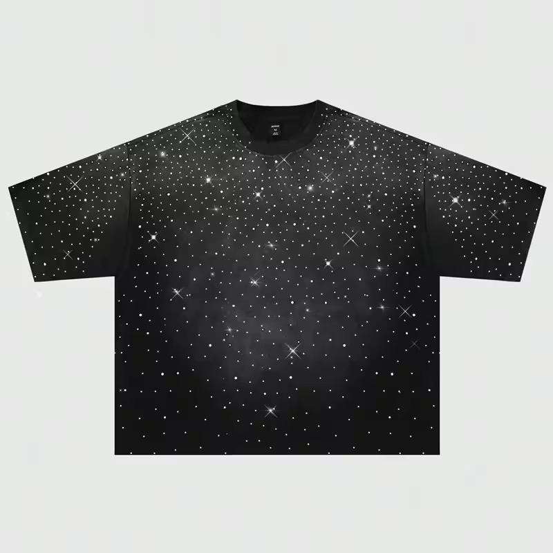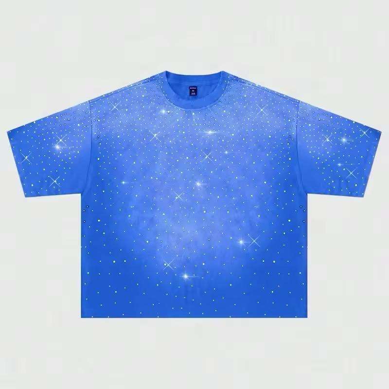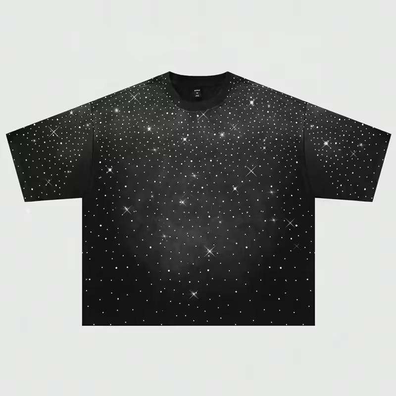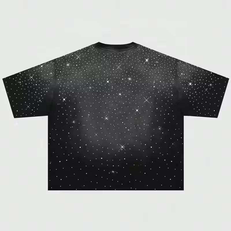 T-shirts de marque élégants personnalisés pour hommes, effet vieilli, délavé à l'acide, avec transfert de strass, service OEM de logo personnalisé