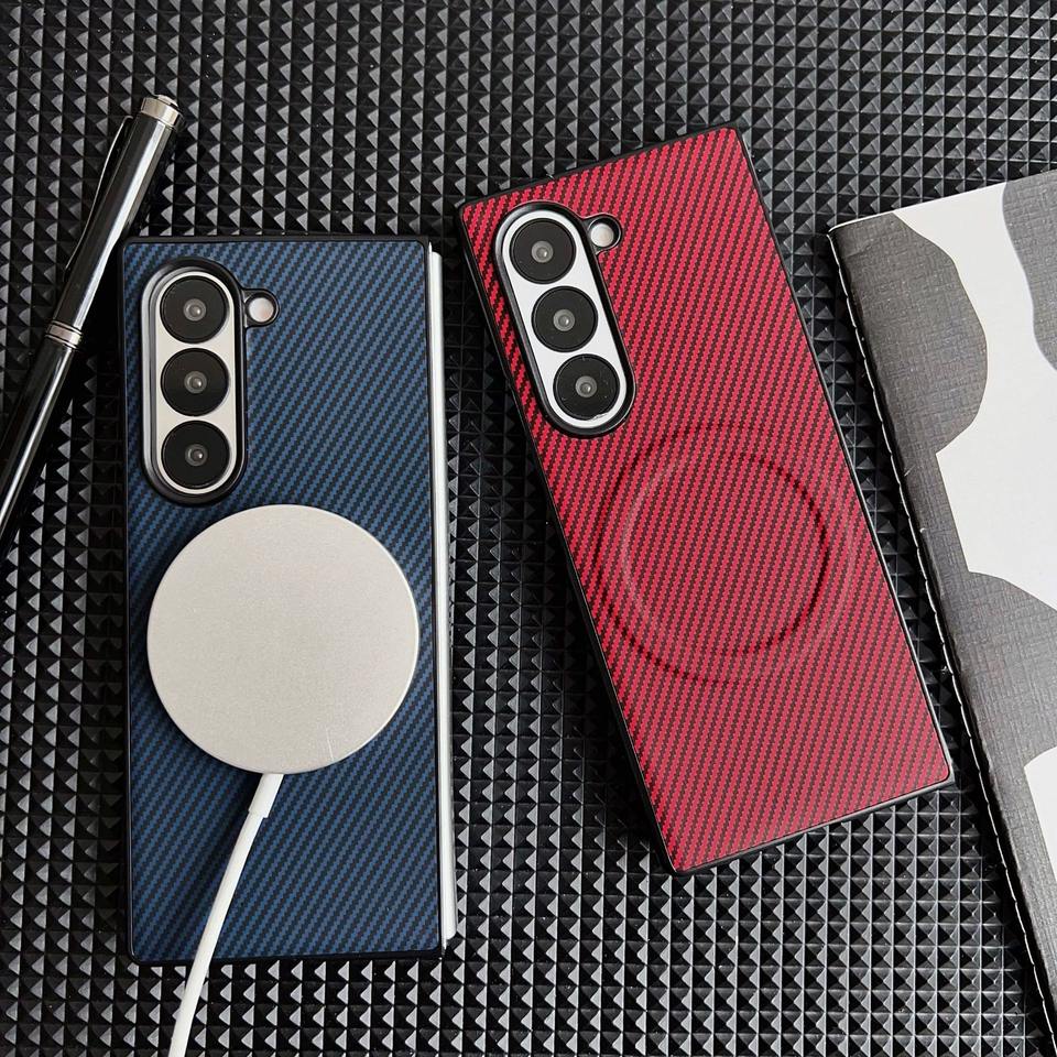 Shenzhen Mengni coque magnétique pour Samsung Z Fold 7/6/5/4/3 – motif fibre de carbone en PC+TPU avec cuir PU, design élégant
