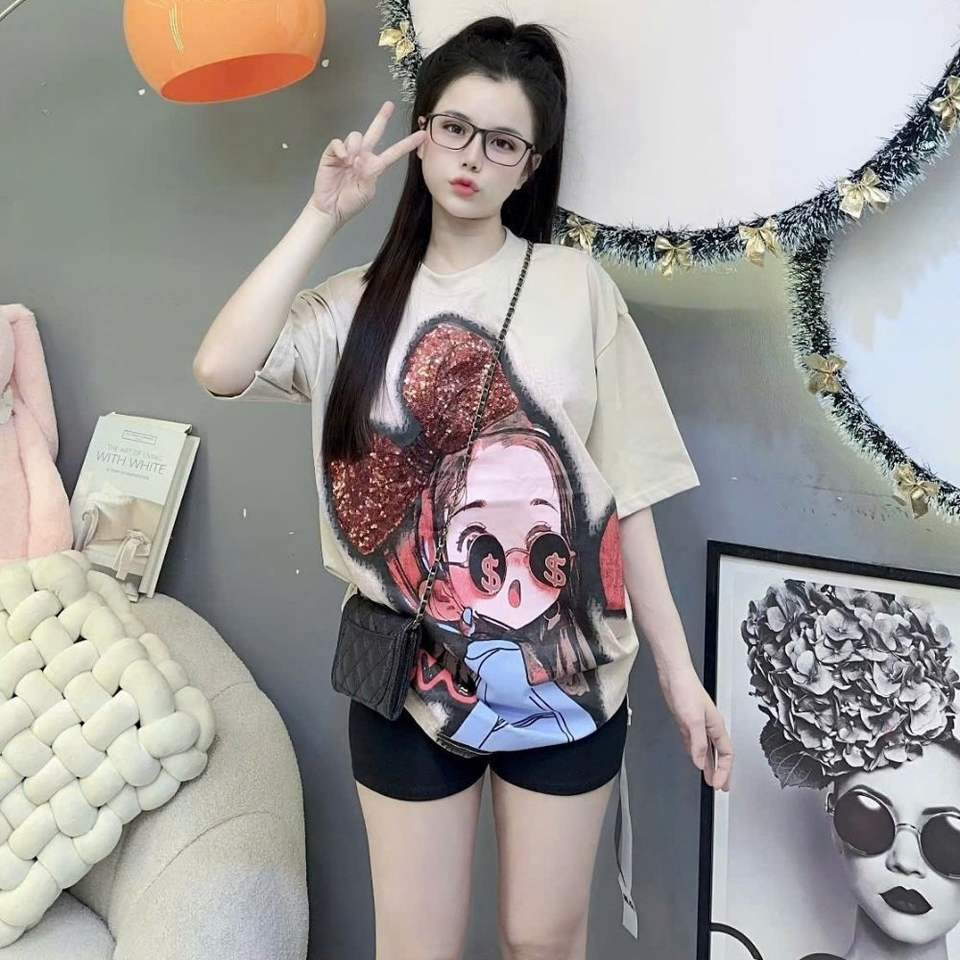 Ensemble d'été décontracté élégant avec un t-shirt amusant et un short lumineux au-dessus du genou-100% coton pour passer du temps avec des amis