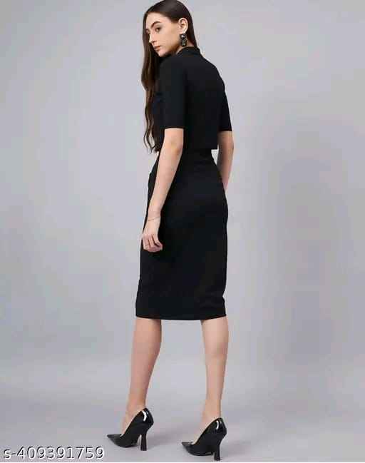 Élégant Chic Crop Blazer Bouton Détail Jupe Ensemble Solide Laikra Tissu Manches Trois-Quarts Élégant Robes Décontractées Ensemble