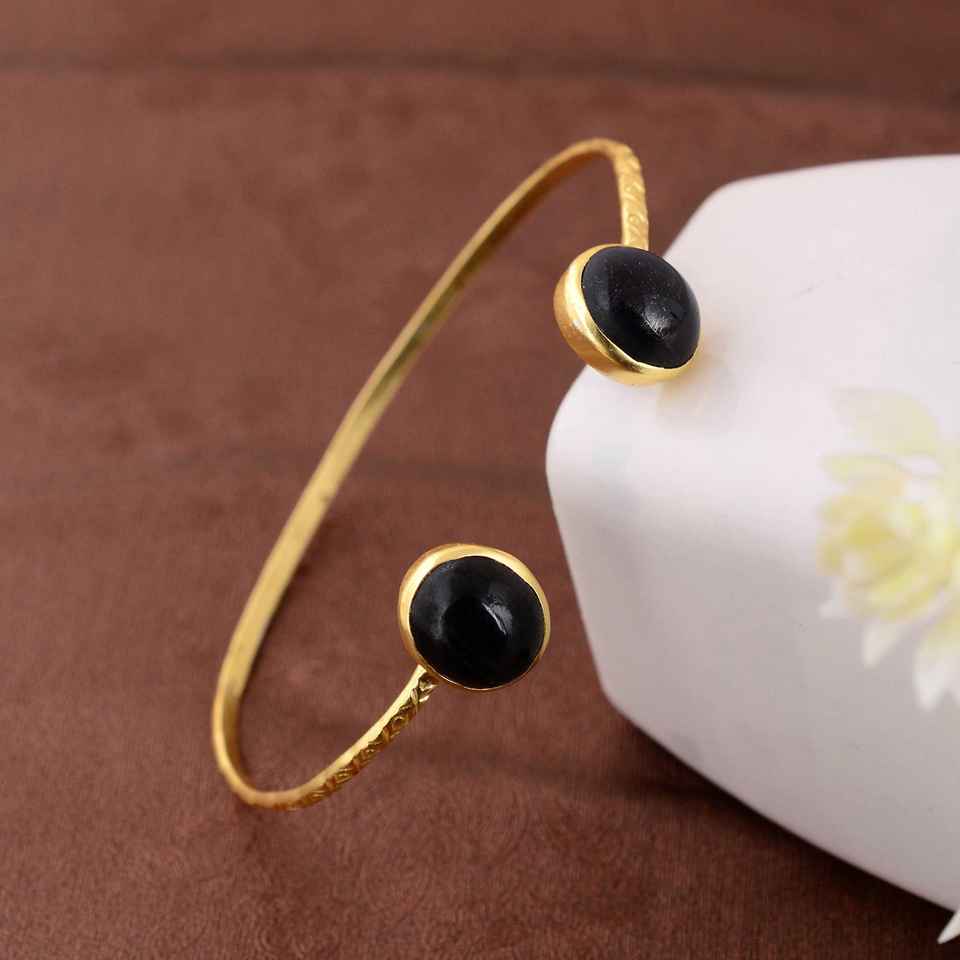 Stylish Christian Weddings High Quality Black Onyx Gemstone Women's Necklace Gold-Plated Bezel Open Cuff Bracelet Silver Gift