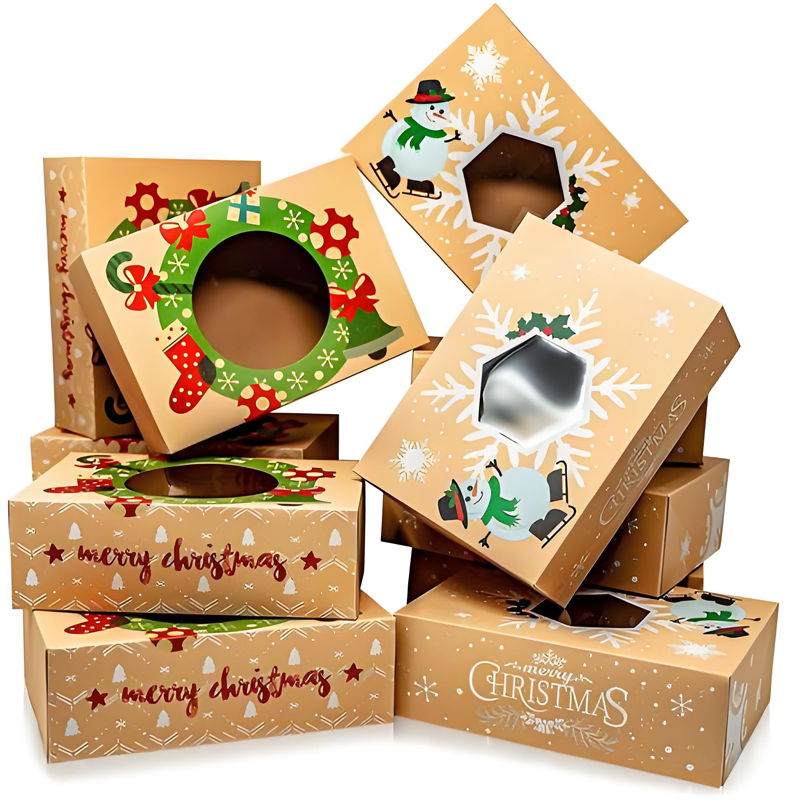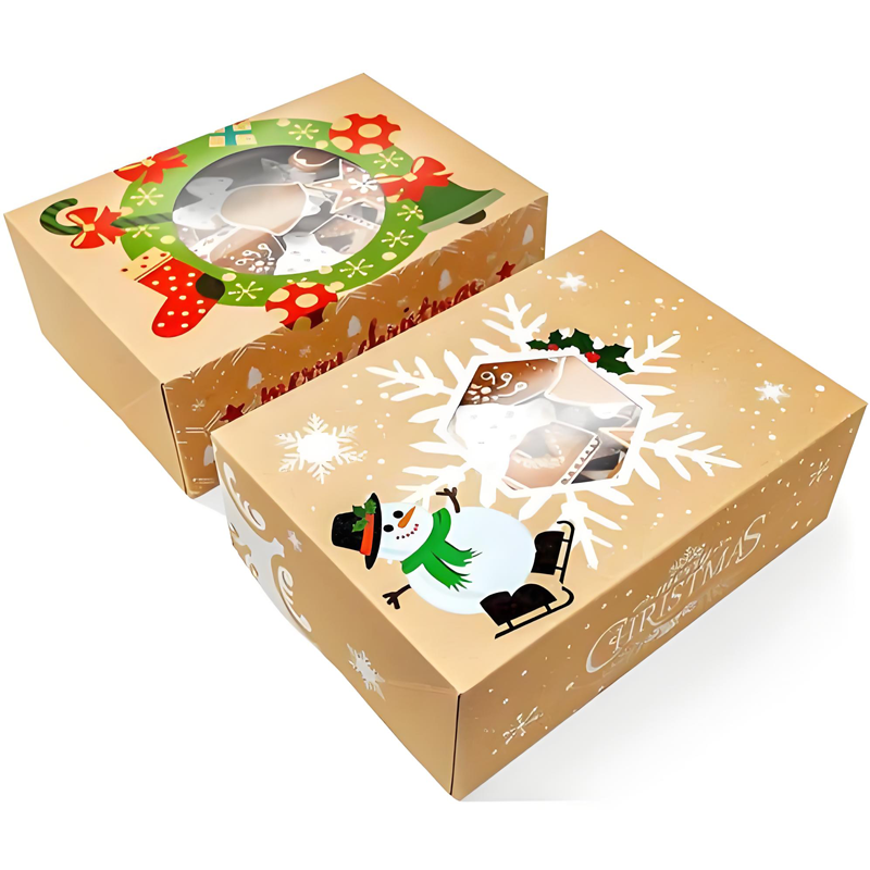 Emballage de boîte à gâteaux de Noël élégant Boîte-cadeau sur le thème des vacances pour la boulangerie et la confiserie