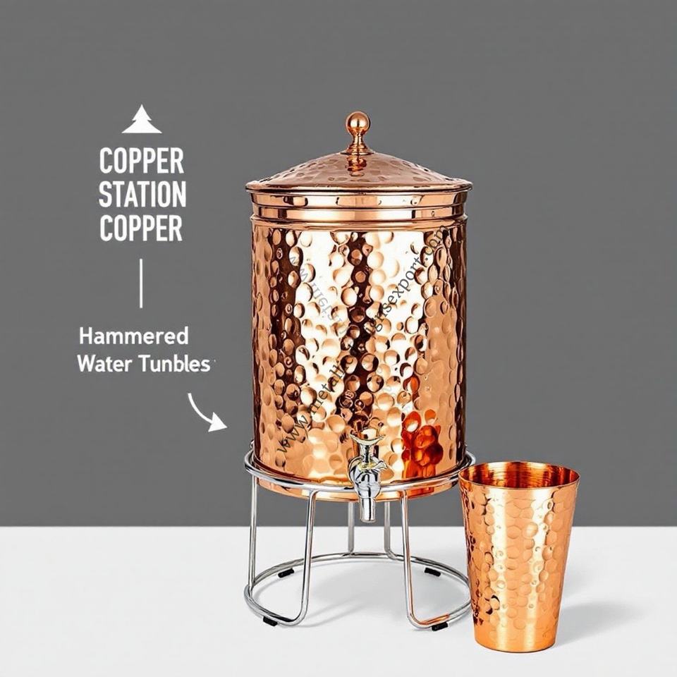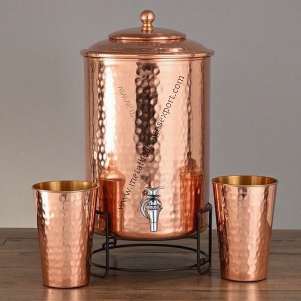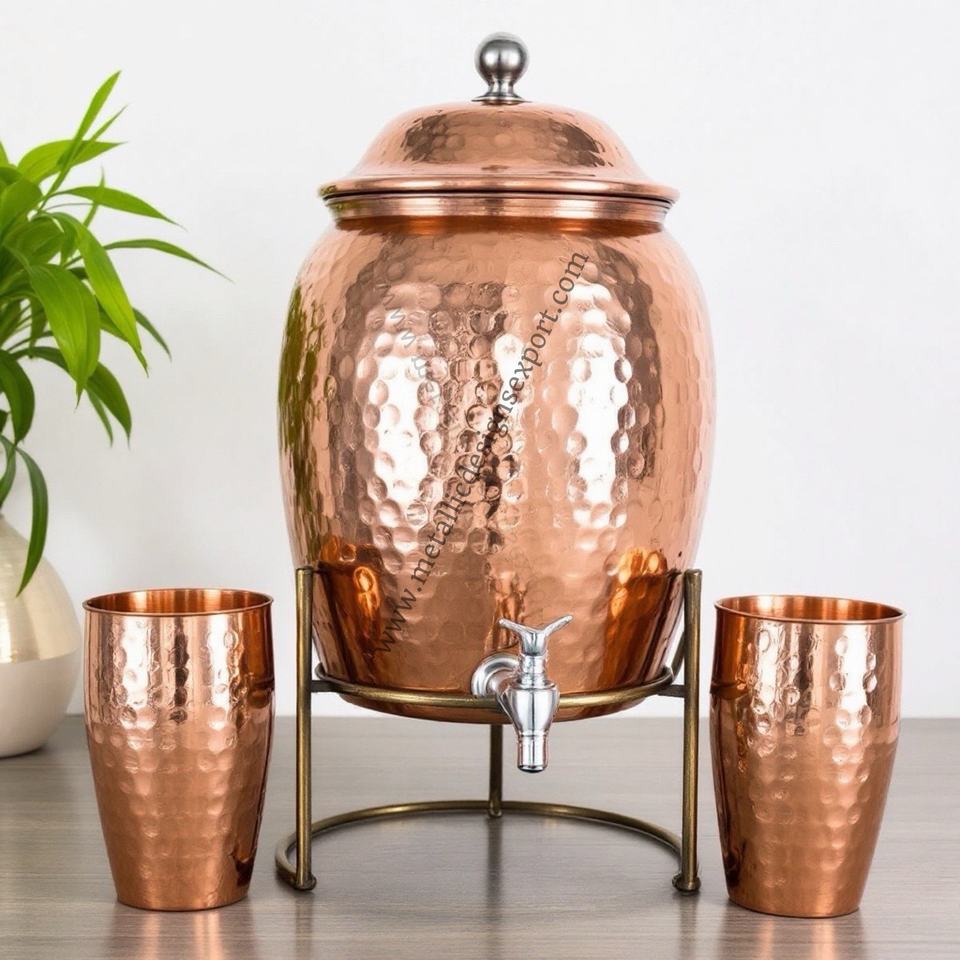 Réservoir de stockage d'eau en cuivre élégant avec pot distributeur de lunettes support en métal pour usage domestique pot d'eau potable meilleure qualité