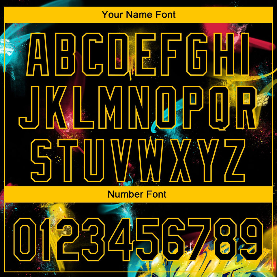 Chemises de performance élégantes personnalisées avec impression graffiti noir et jaune, broderie sur mesure, coupe confortable, séchage rapide