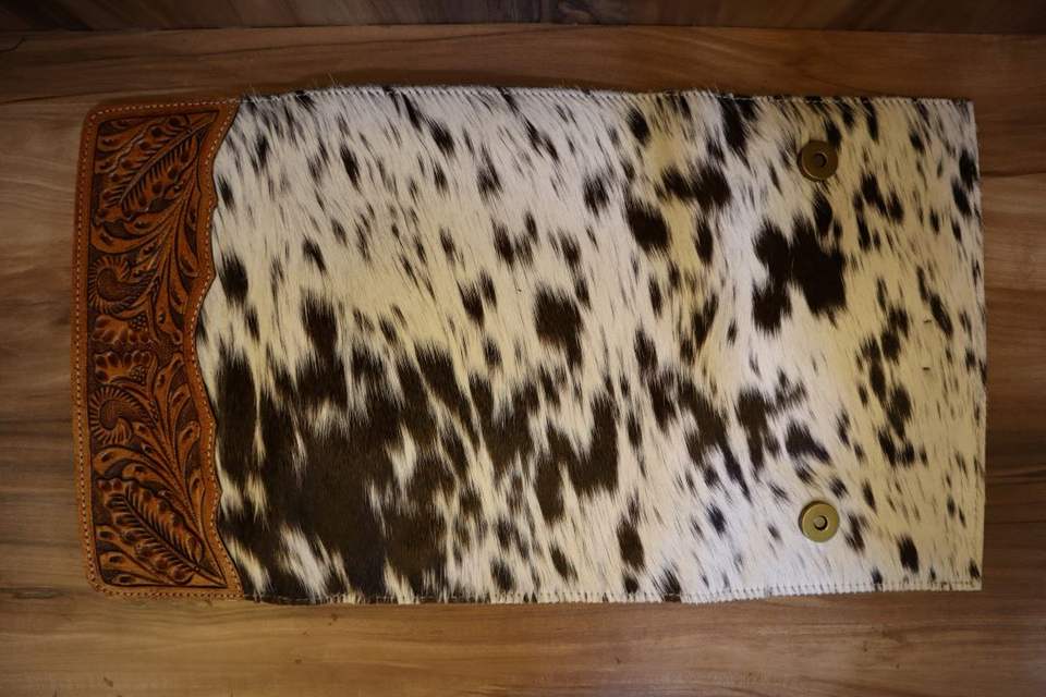 Portefeuille élégant en fourrure de vachette multi utilisations nouveau Design portefeuilles en cuir occidental usiné à la main sculpture portefeuille pochette coque de téléphone